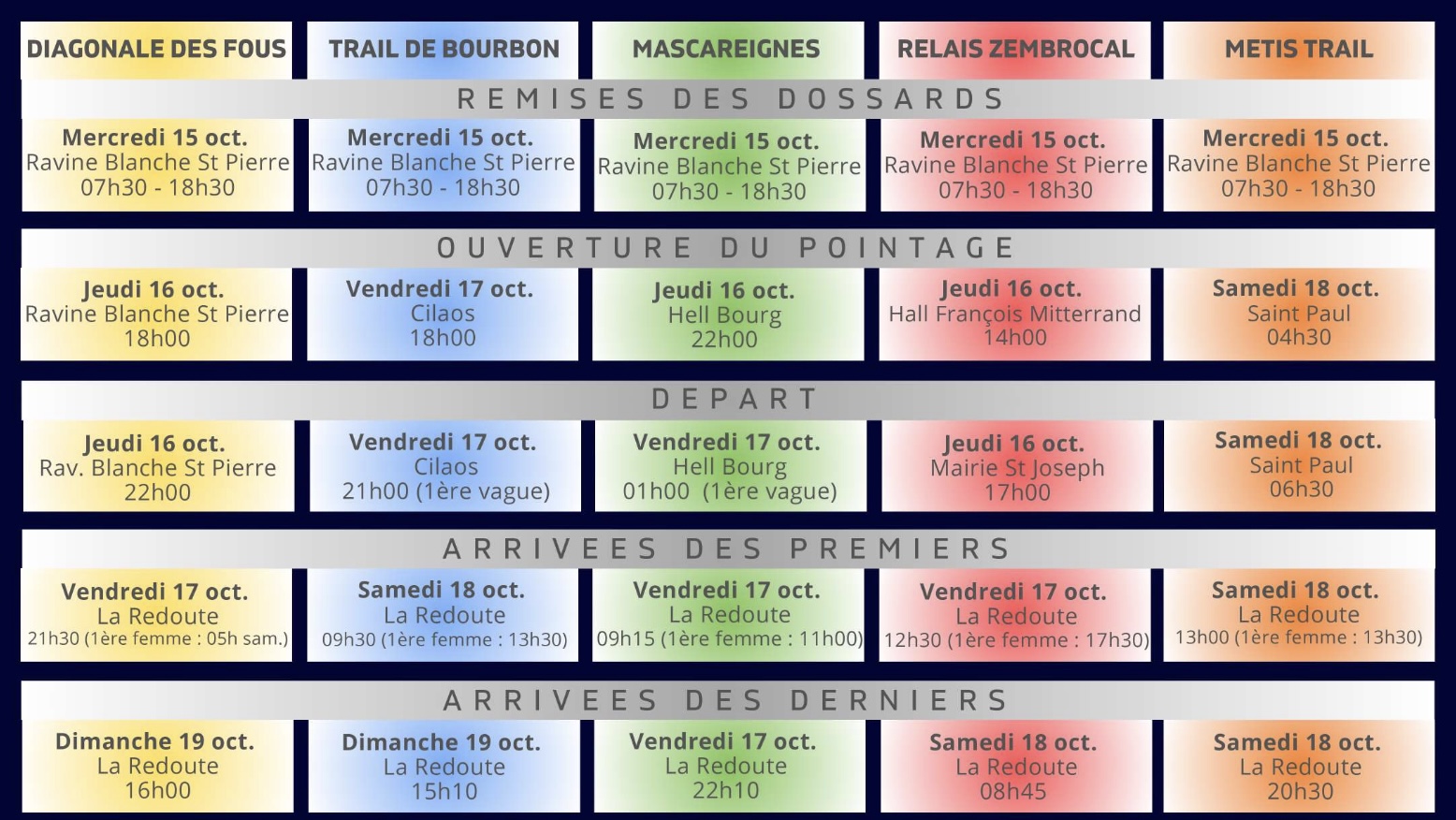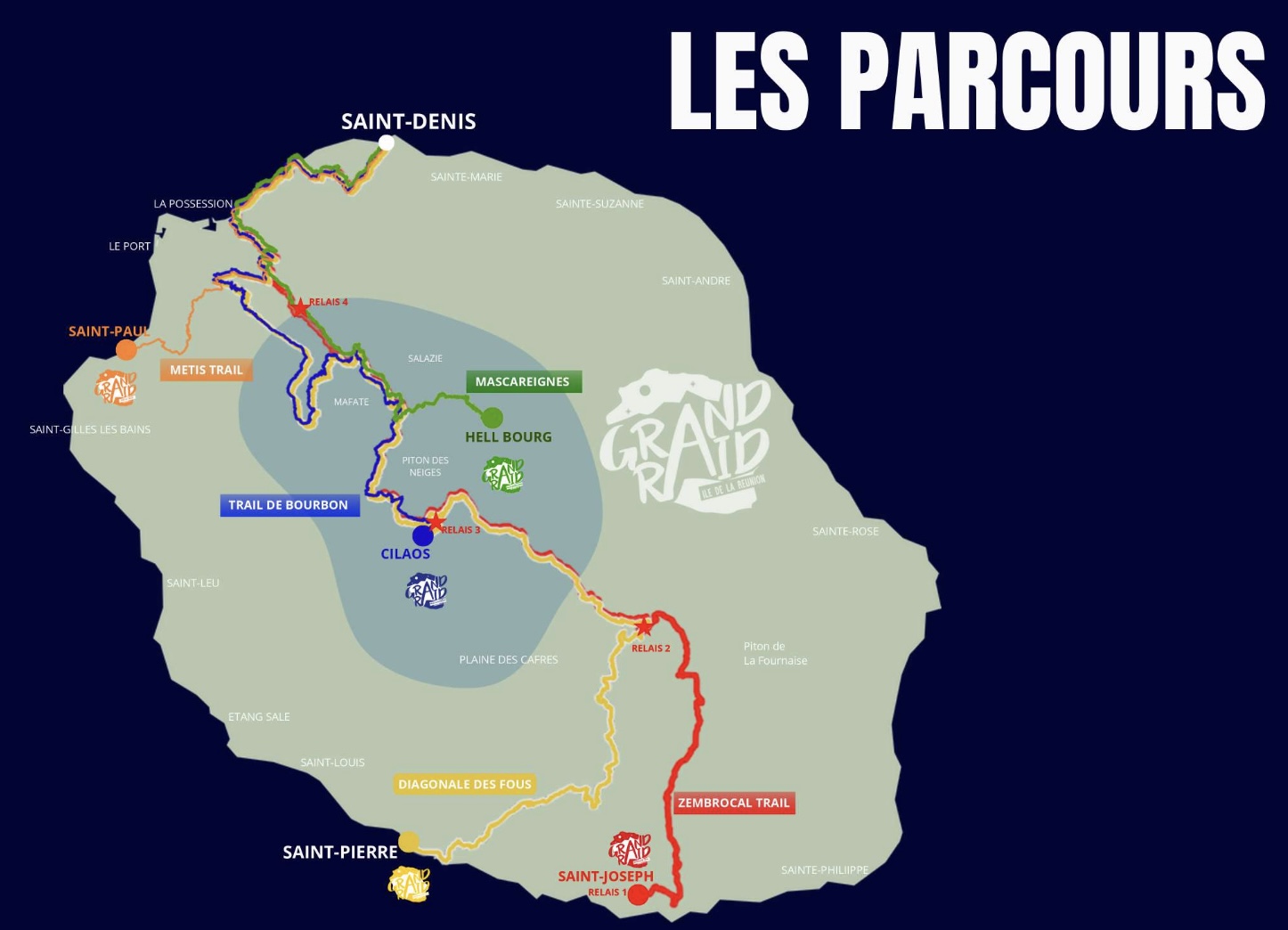 Le Grand Raid 2025 proposera, comme de coutume, cinq parcours de difficultés variées. La Diagonale des Fous, l'épreuve reine de 175 km et 10 500 m de dénivelé positif, reste le défi ultime pour les traileurs aguerris. Le parcours cette année encore promet d'être pour le moins …sportif.