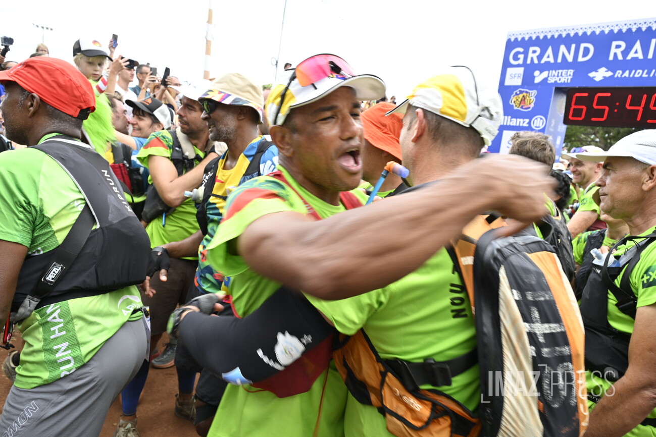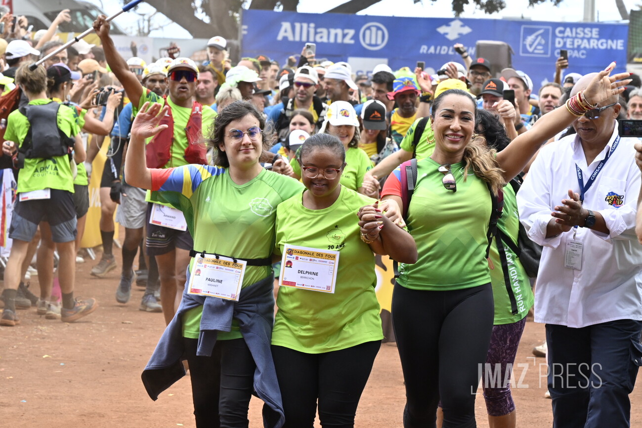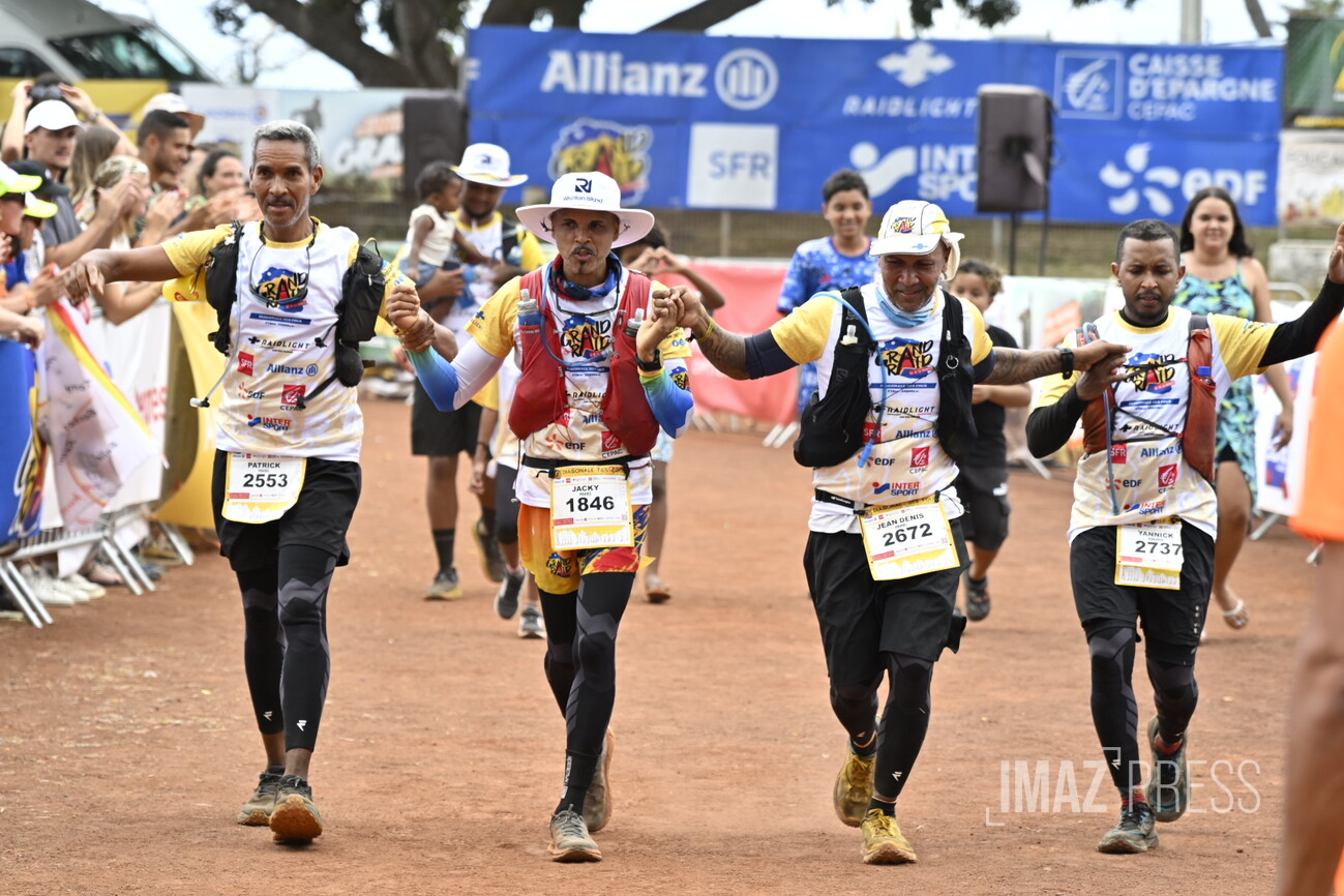 Il a été accueilli par les gagnants de la compétition, mais aussi par une foule venu applaudir ceux qui ont ont passé près de trois jours dans les sentiers escarpés de La Réunion.