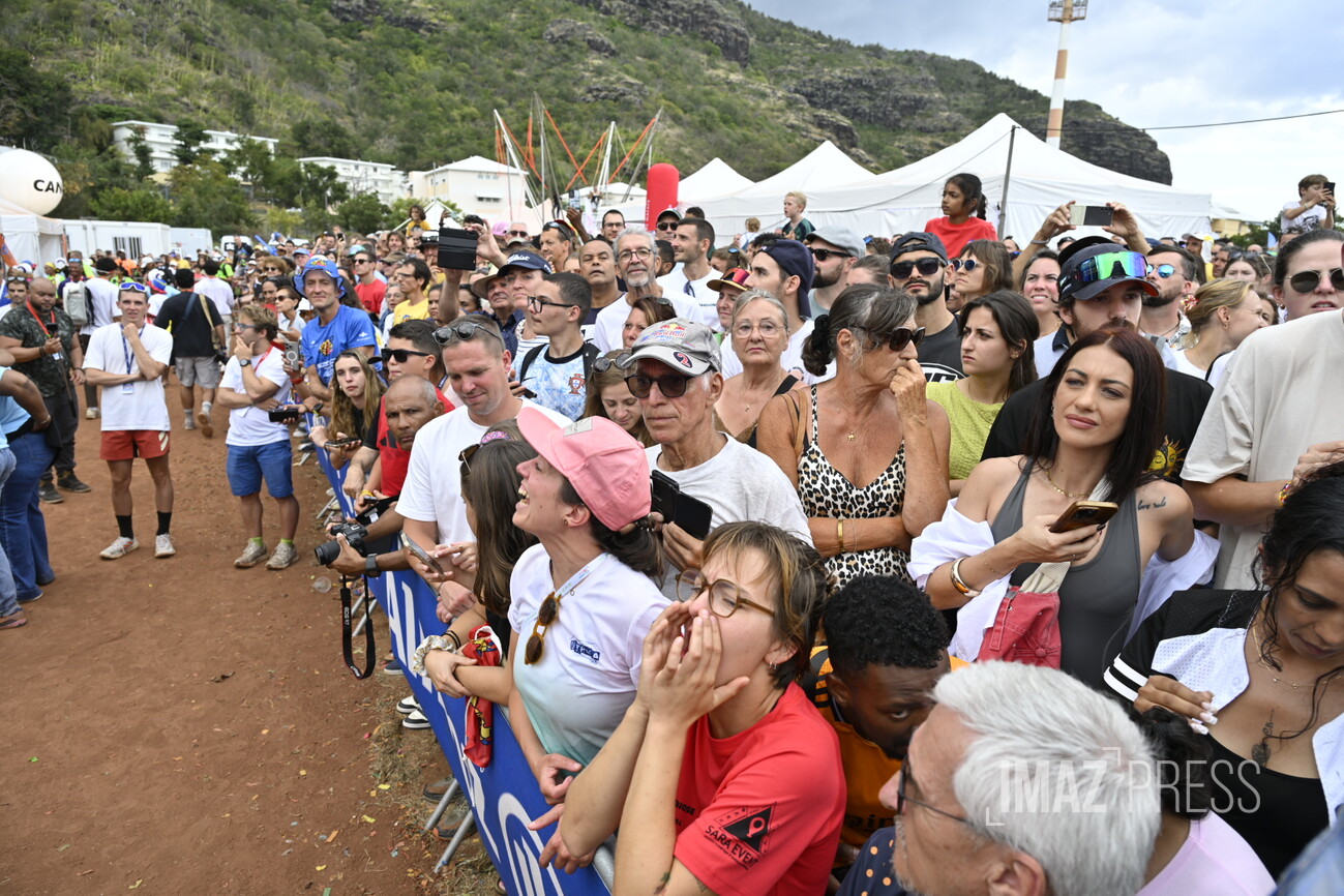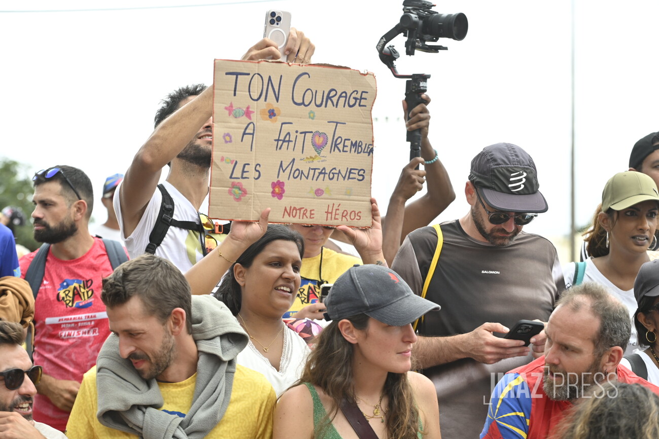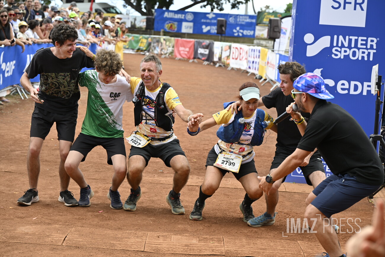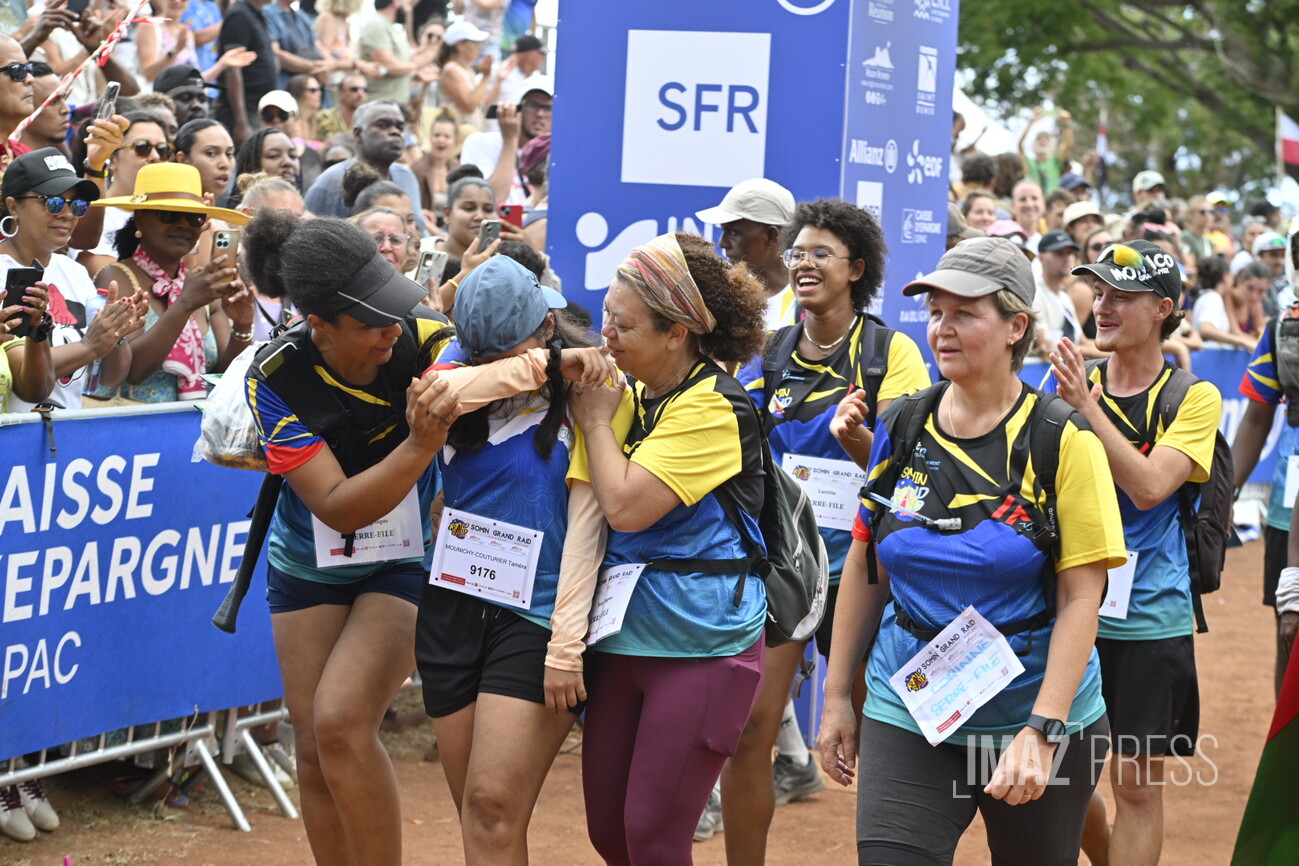 Il a été accueilli par les gagnants de la compétition, mais aussi par une foule venu applaudir ceux qui ont ont passé près de trois jours dans les sentiers escarpés de La Réunion.