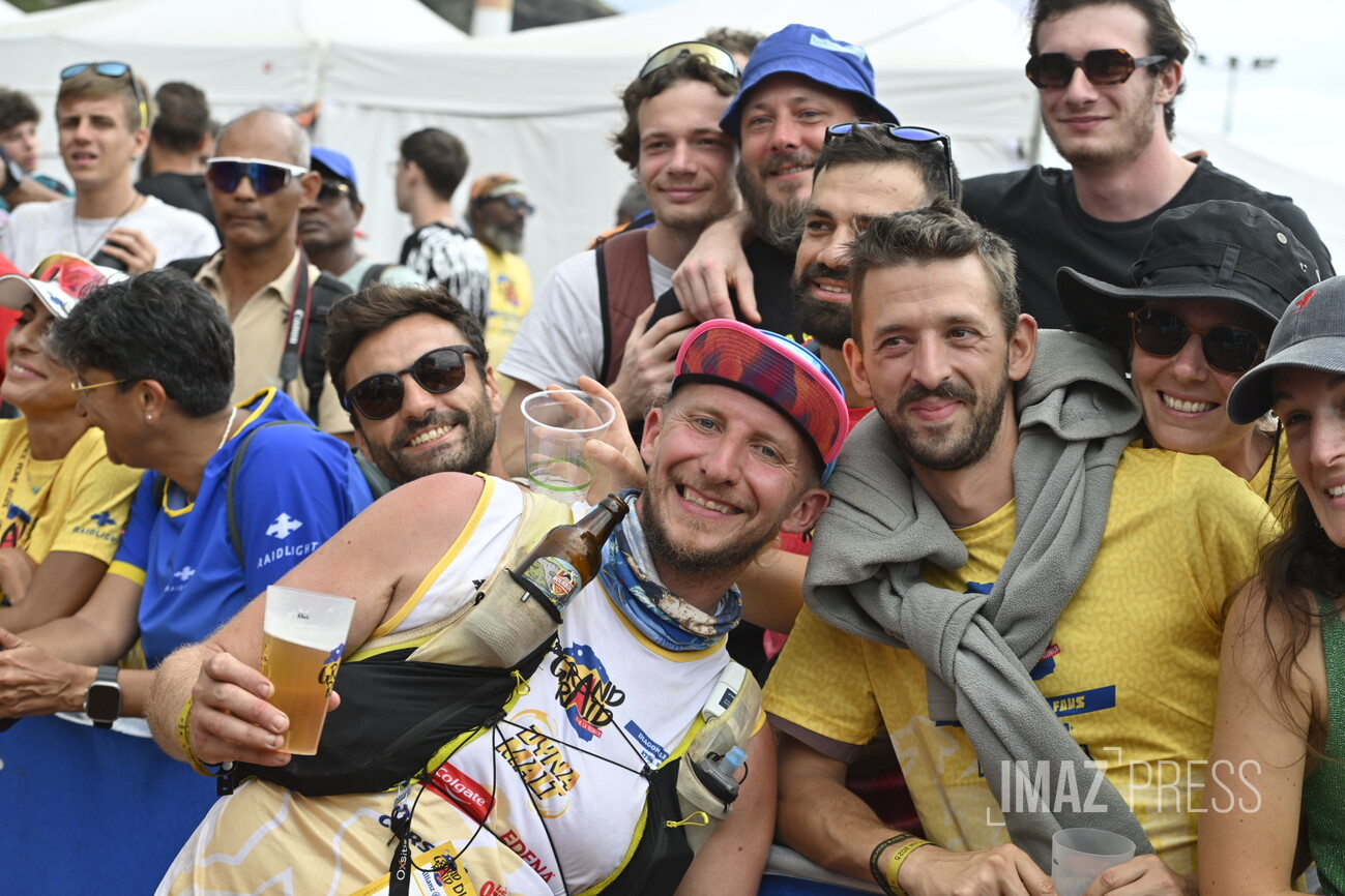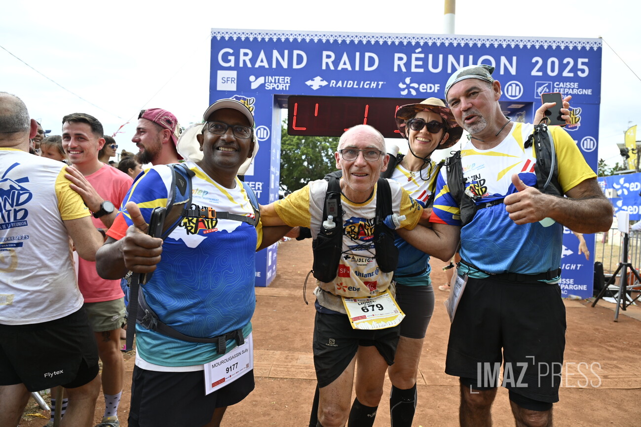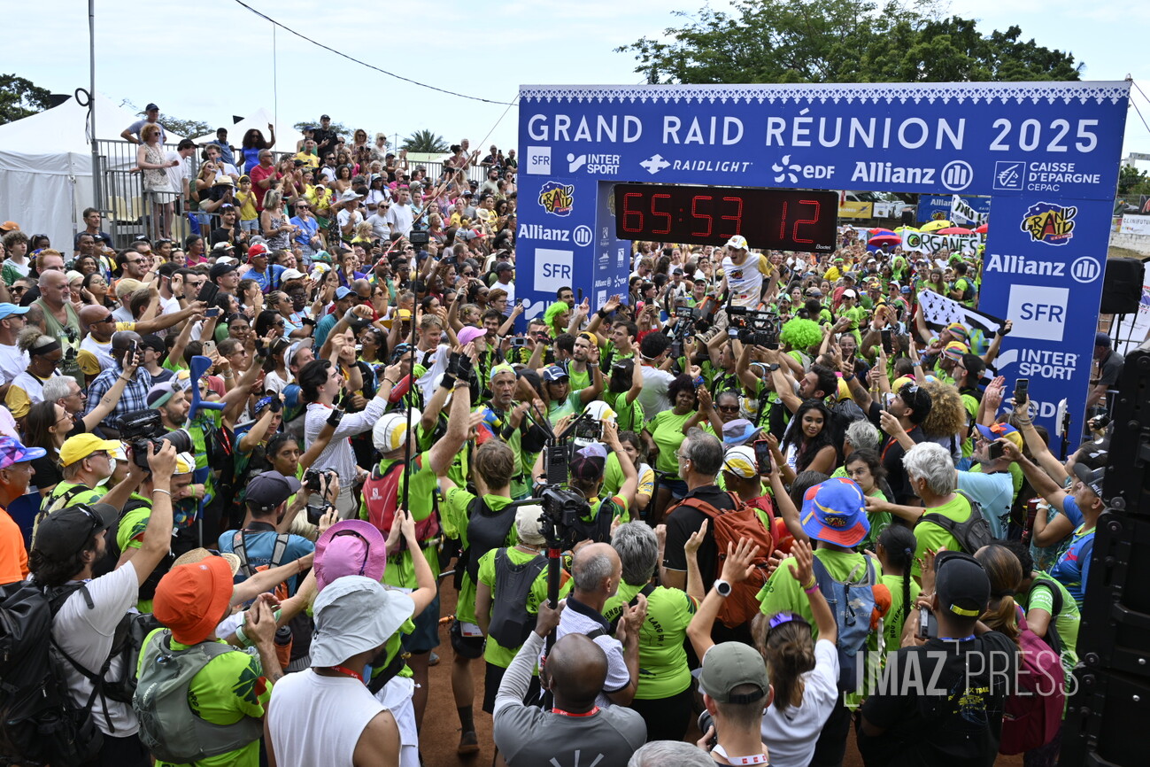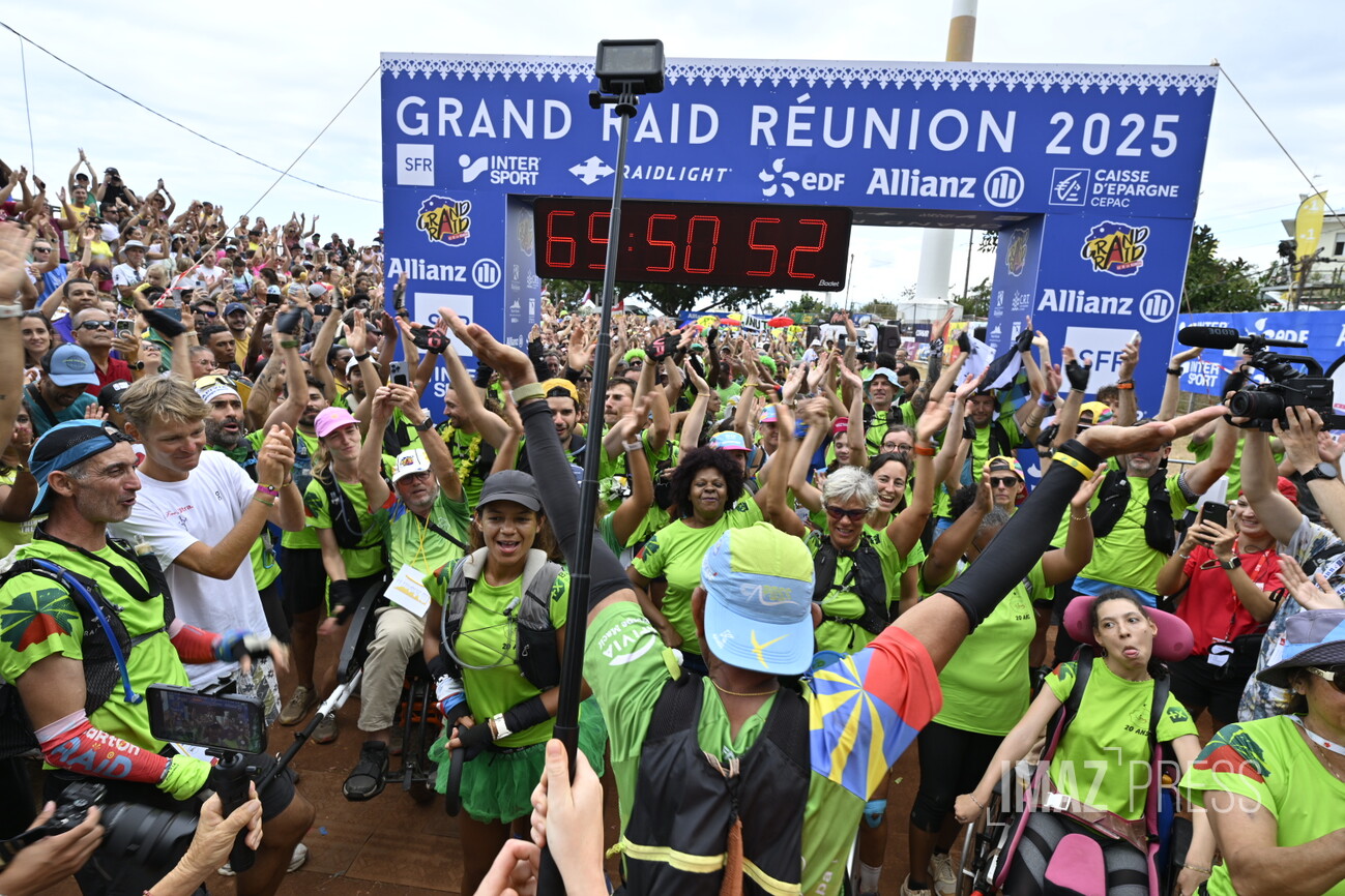 (Actualisé) Le Grand Raid 2025, c'est terminé. Alexandre Berroua, dossard 1644, a été le dernier a franchir la ligne d'arrivée de la Diagonale des Fous, à 15h59 ce dimanche 19 octobre 2025, accueilli par les grands gagnants Baptiste Chassagne et Blandine L'Hirondel. Les participant.es du Trail de Bourbon ont, eux, clôt leur course à 15h(10). La Mascereignes, le Zembrocal trail et la Métis trail se sont toutes déjà terminées. (Photo eg/www.imazpress.com)