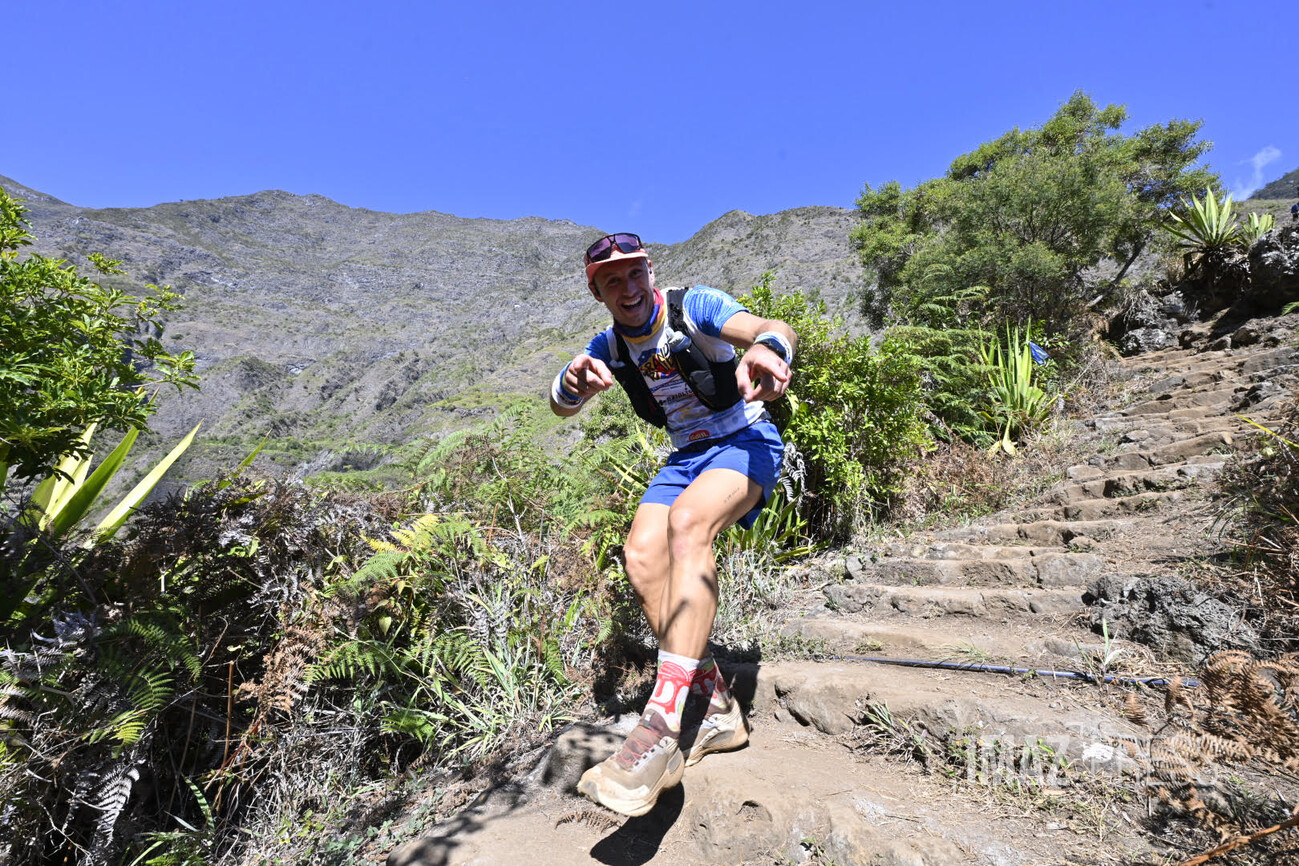 Judicaël Sautron, premier Réunion de la Diagonale des fous en 2024, 5ème au classement général. Il a pointé à la Grande Chaloupe à 9h22. Il va bon train vers le Colorado