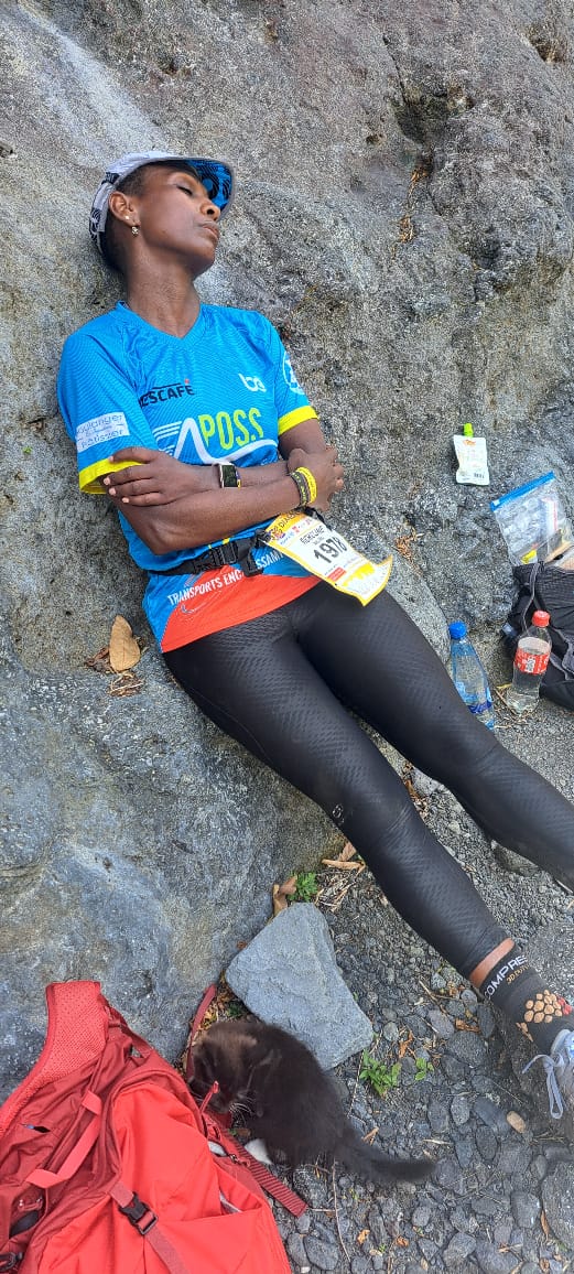 Richeline Malinga, 47 ans, dossard 1978 est plus loin mais toujours en course. Après Marla qu'elle a dépassé à 1h30, elle se dirige désormais vers la Plaine des Merles.