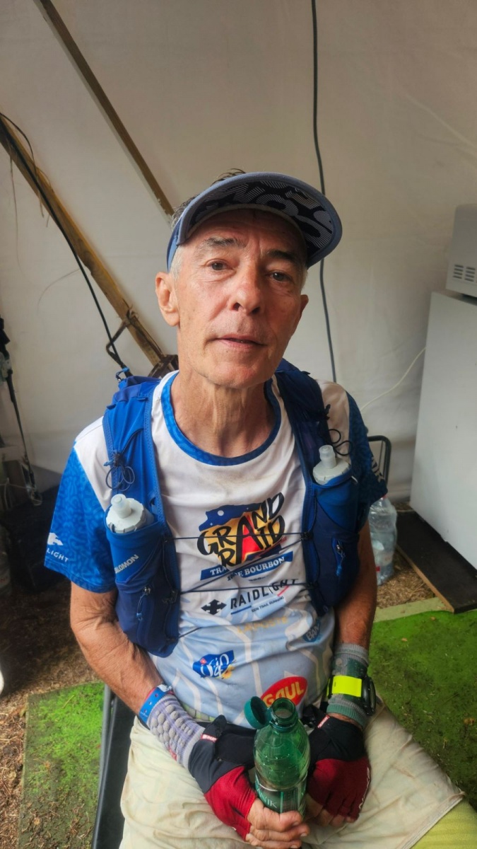 Enfin, notre infiltré sur le Trail de Bourbon, Alain Descorsier, dossard 5574, fait son chemin. Parti à 1h du matin de Cilaos, ce retraité de l'Éducation nationale de 62 ans qui poirte le dossard 5574 a pointé à Sentier Scout à 1h01.