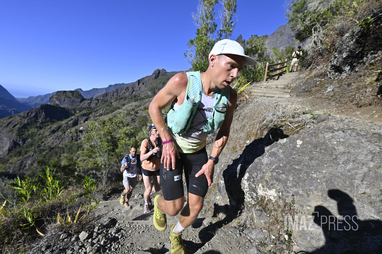 Il est plus que jamais installé en tête de la course. Le leader a visiblement fait le vide derrière lui. Il est suivi de loin par Yannick Noël qui devrait pointer au Maïdo avec une vingtaine de minutes de retard.