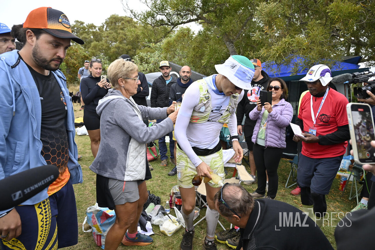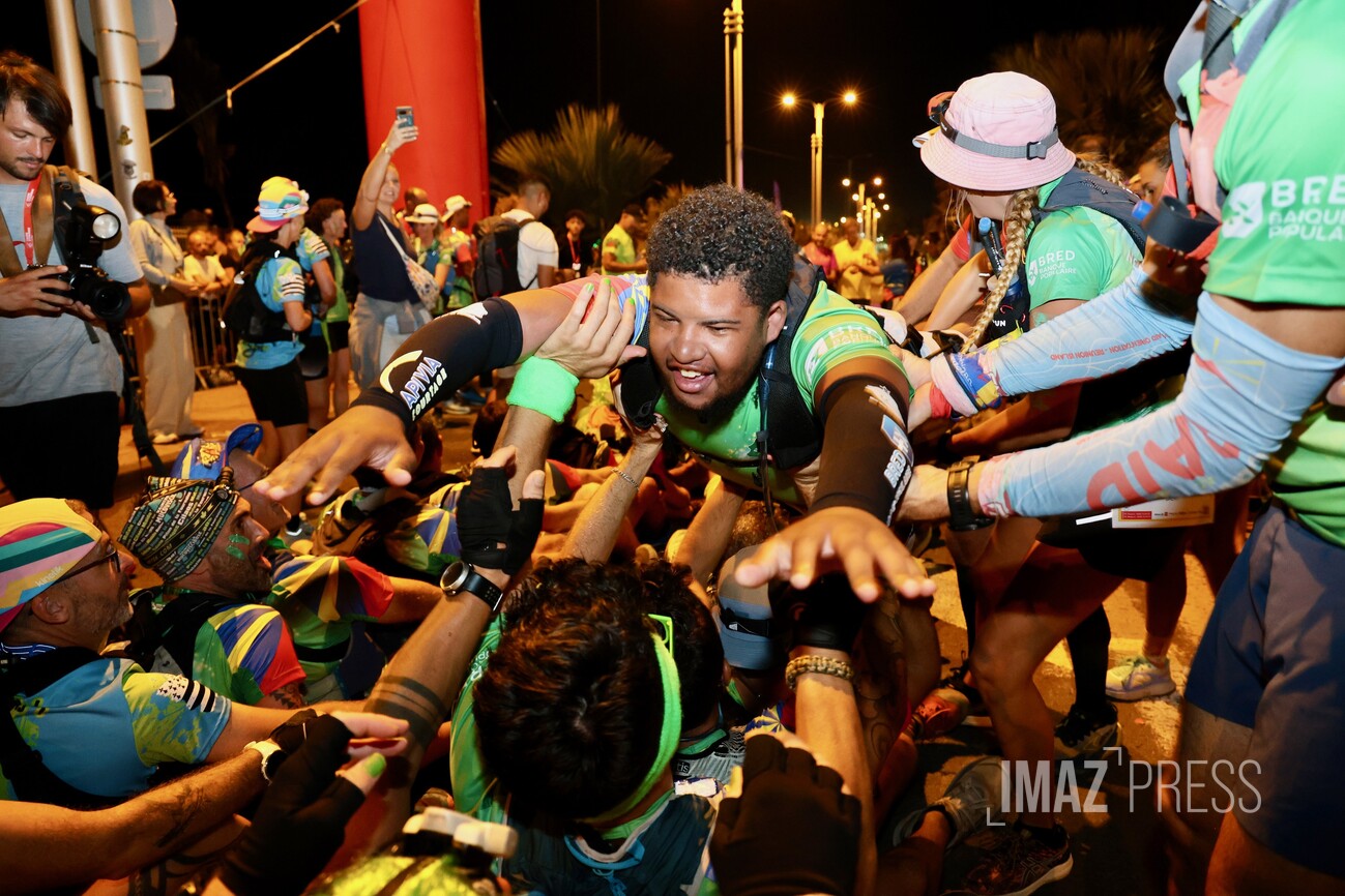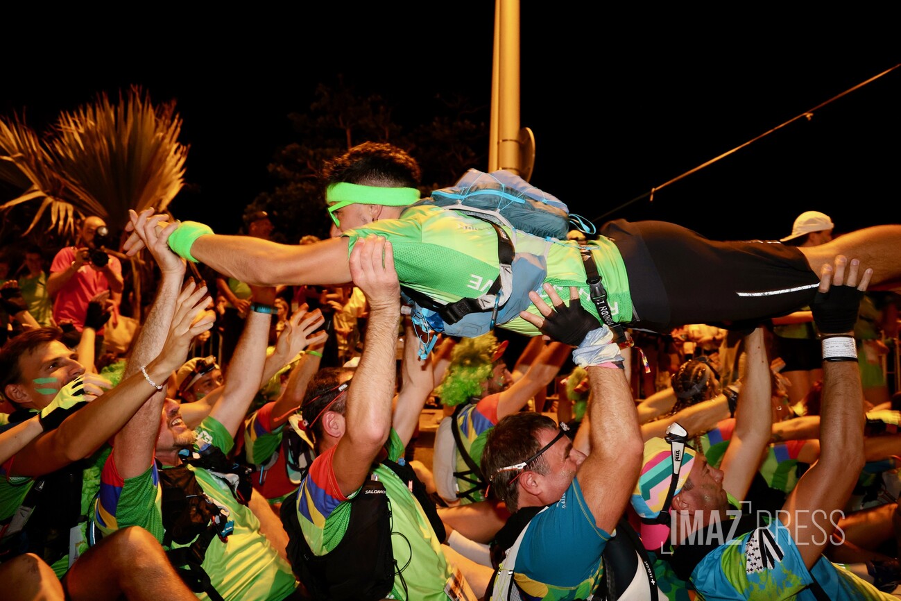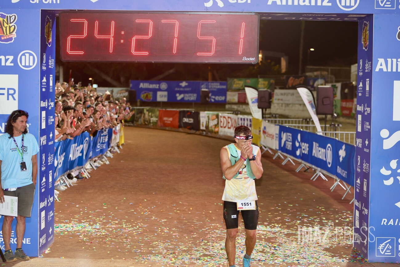 Et voilà, les trois premiers de la Diagonale des fous sont arrivés. C'est Aurélien Dunand-Pallaz, gagnant en 2023, qui vient clore le podium en arrivant à 23h13 après 25 heures 15 minutes et 35 secondes de course.