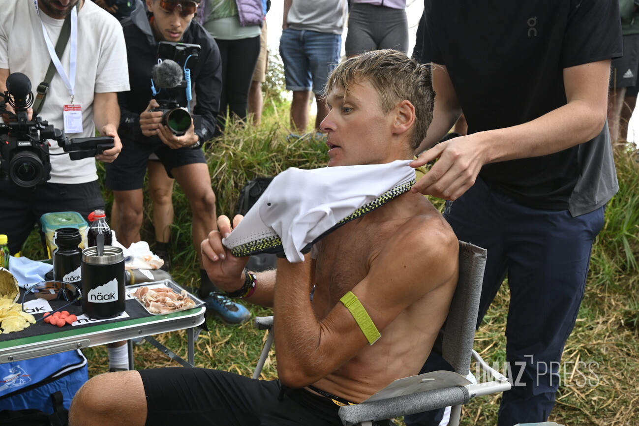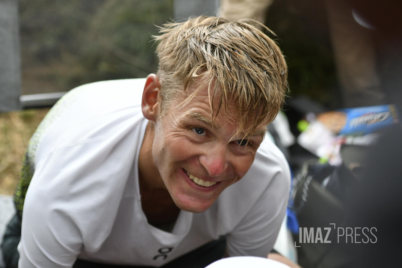 "Dès le premier kilomètre j'ai su que ça allait être une course de coeur. J'ai pas les mots, juste merci", lance-t-il. "J'ai souffert un peu mais je l'ai même pas senti tellement j'ai reçu de bonnes ondes", assure le champion.