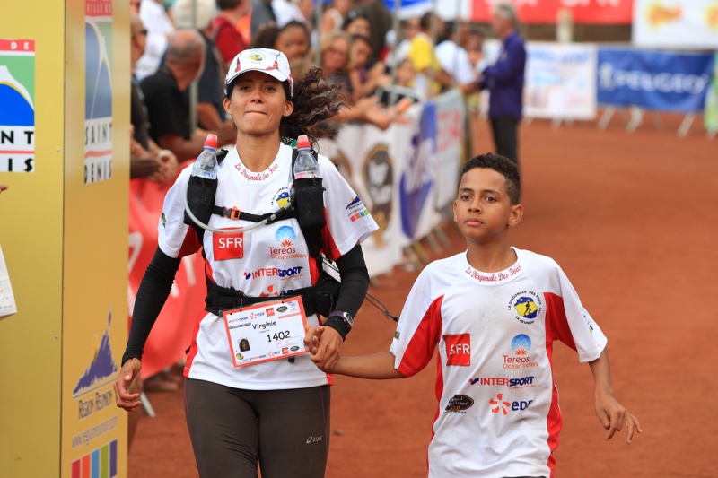 Le même accueil a été réservé à l’avant-dernier du Grand Raid. Jim Hoarau a bouclé la course en un peu moins de 65 heures. Lui, qui était pourtant le dernier à pointer au Colorado, a trouvé la force de dépasser Yoannes Dano, alors très mal en point sur le Chemin des Anglais. Jim a tenu a remettre sa médaille à son fils son 4 ans. Sandrine, sa femme, était à ses côtés sur la ligne d’arrivée. Elle a toujours cru en son mari : " je suis très fière de lui, je savais qu’il allait y arriver. " Le coureur a pris une revanche pour cette 21ème édition, lui qui avait abandonné l’année dernière. L'avant-avant-dernier coureur arrivé au stade de la Redoute est une femme. Virgine Langevillier, antépénultième du Grand Raid 2013, a bouclé son parcours en 64 heures et 52 minutes .