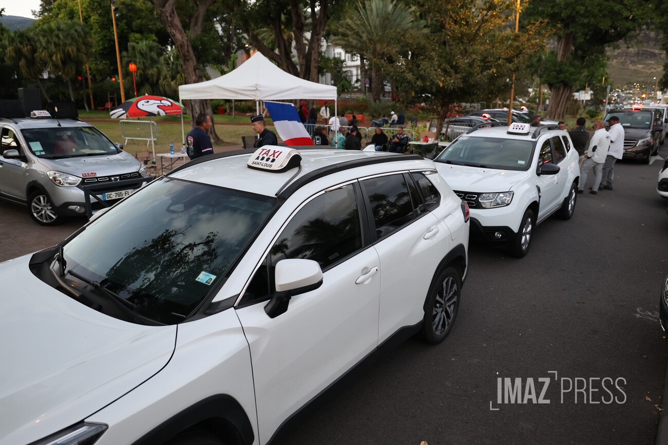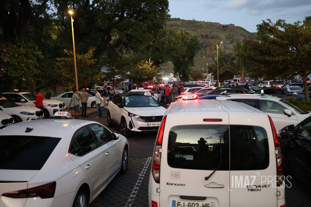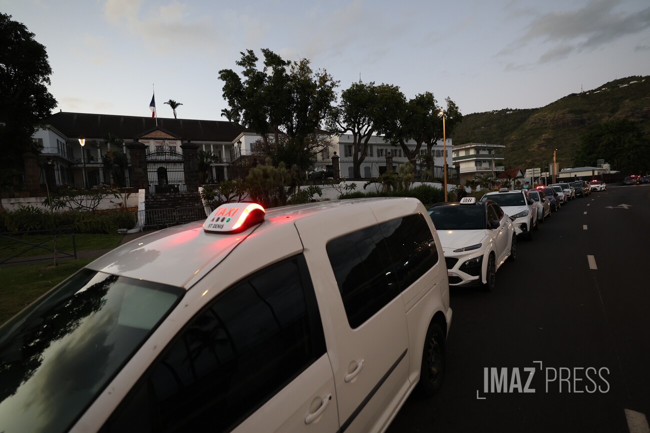 Les taxis sont mobilisés devant la préfecture. La bretelle d’accès au vieux pont de rivière à Saint-Denis est fermée par les forces de l’ordre.