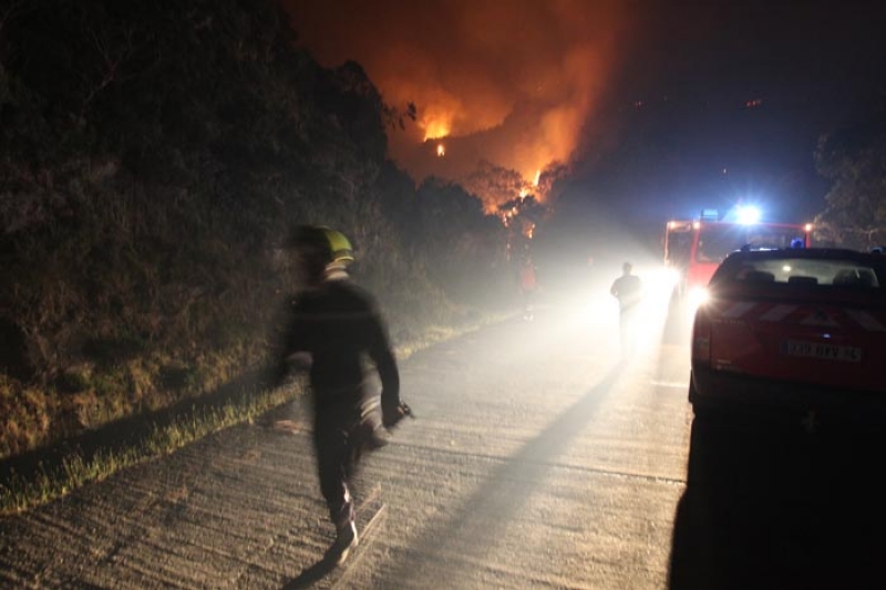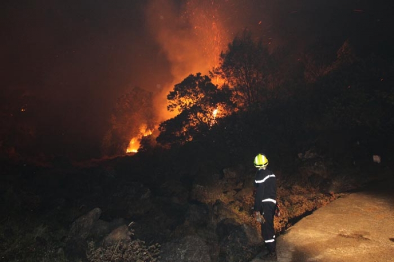 Plus de 300 hectares de forêt ont déjà brulé depuis le début de l'incendie ce mardi après-midi 25 octobre 2011 dans la zone comprise entre le Tévelave et le piton Maïdo. Le sinistre est beaucoup plus virulent qu'en octobre 2010 où près de 800 hectares avaient brûlés en 12 jours. Dans la nuit, un pompier a été blessé au thorax à la suite d'une chute. Tôt ce mercredi matin les pompiers ont effectué des reconnaissances aériennes. Après la visite sur place du préfet Michel Lalande la décision de faire appel à des renforts de métropole et au Dash 8, l'avion bombardier d'eau, pourrait être prise très vite. Huguette Bello, députée-maire de Saint-Paul en a officiellement fait la demande au préfet ce mercredi matin. Une centaine de pompiers, une trentaine de véhicules de secours et cinq hélicoptères bombardiers d'eau luttent avec acharnement contre les flammes depuis mardi après-midi