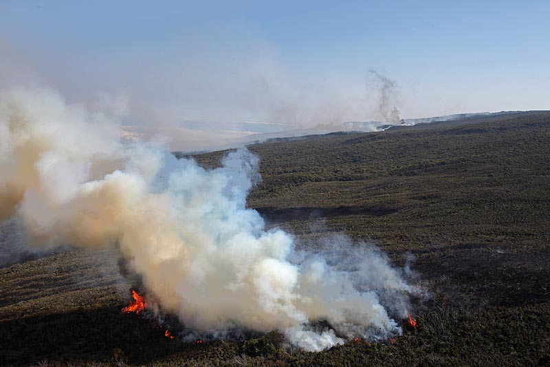 Le foyer situé dans les hauts de Trois Bassins, au niveau du gîte des Tamarins, a consumé plus de 50 hectares. Le second foyer, le plus dévastateur, est localisé dans les hauts de Saint-Paul, non loin du sentier de la Glacière. Il a brulé plus de 200 hectares de végétation. La présence de deux départs de feu distincts pourrait accréditer la thèse d'actes volontaires.