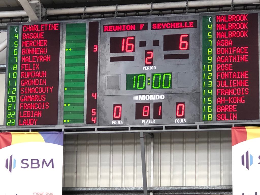 La Réunion mène 16 points à 6 contre les Seychelloises pour l'instant. Les Réunionnaises ne laissent rien passer, mais les Seychelloises ne découragent pas.