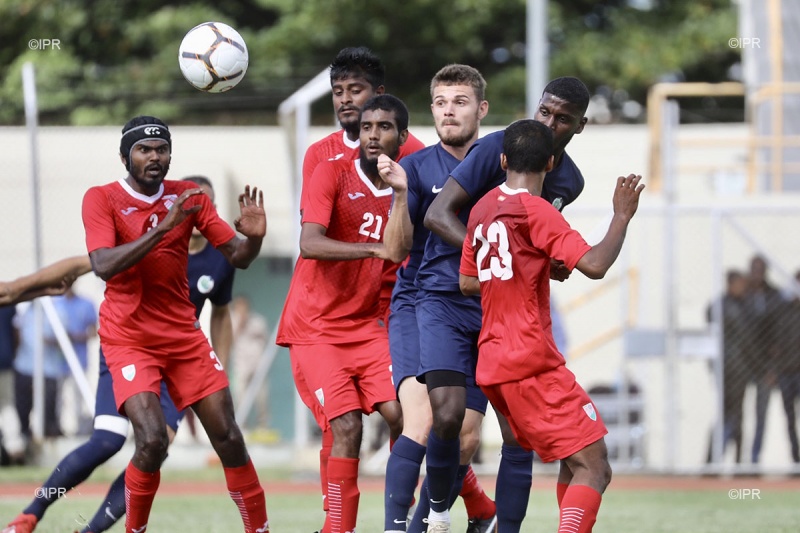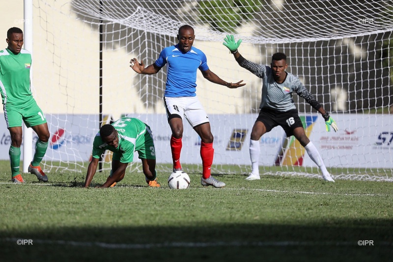 Jean-Michel Fontaine (de Saint-Pierre) a dévié le ballon vers Mathieu Sarpedon qui l’a poussé et fend la cage désertée par le portier Maldivian.