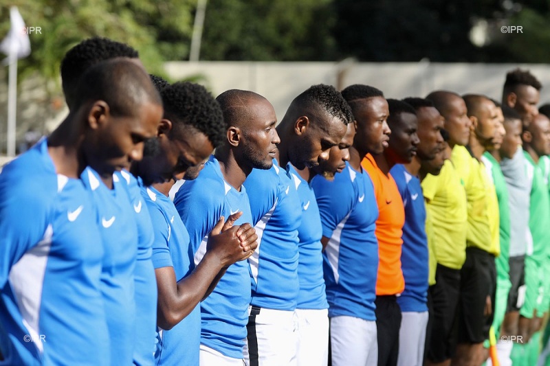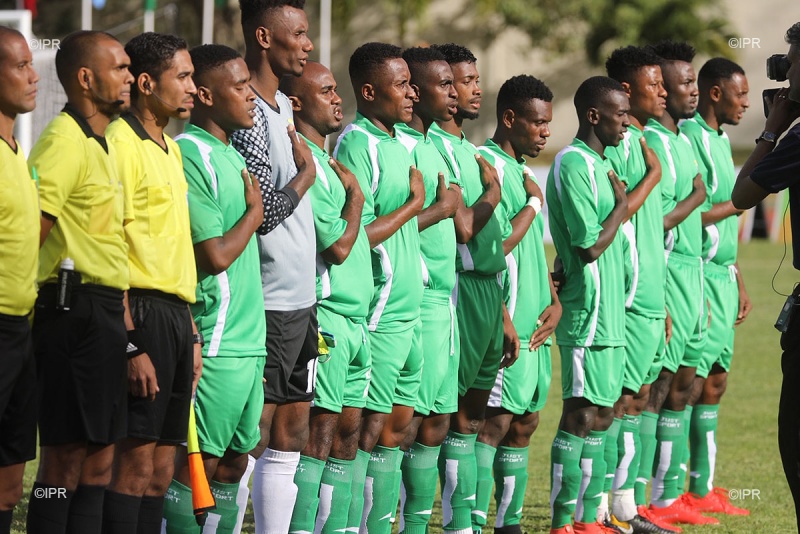 Les joueurs des Comores chantent leur hymne nationale, ceux de Mayotte celle des Jeux des îles.