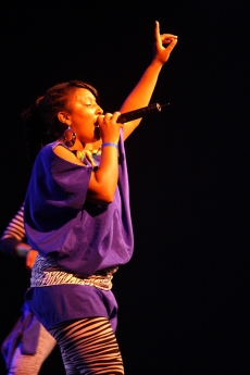 Malkijah, l'une des rares artistes féminines de ce festival Kaloo Bang, a enflammé le public ce samedi 8 octobre 2011. Après avoir enchaîné plusieurs scènes nationales, la chanteuse, représentante du ragga dancehall féminin réunionnais, a clamé ses textes engagés et féministes sur la scène du Hall Karavel devant des spectateurs totalement acquis à sa cause et entraînés par sa musique. Attention à l'éruption Malkijah.
