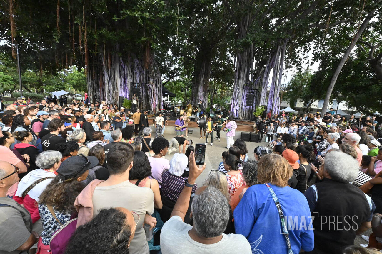 Le mauvais temps n'a pas eu raison des festivaliers. Sur la scène Banyan ce dimanche après-midi, le Séga Jazz Club a transporté les festivaliers dans une autre époque, celle des bals en plein air d’antan. Avec le Bal la Poussière, l’orchestre a fait revivre l’esprit des fêtes populaires réunionnaises. Entre rythmes chaloupés, séga et ambiance conviviale, les danseurs ont envahi le devant de scène. La nostalgie était au rendez-vous.