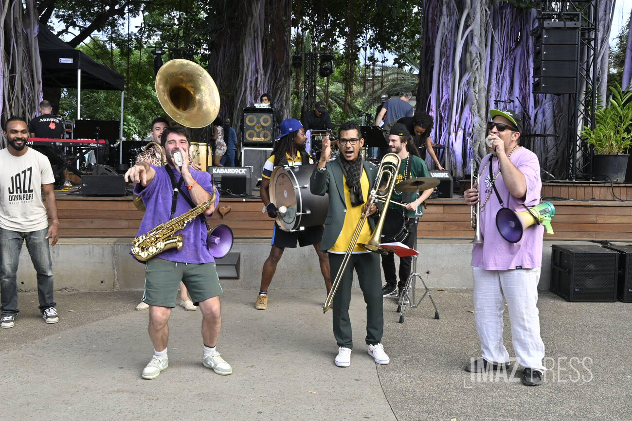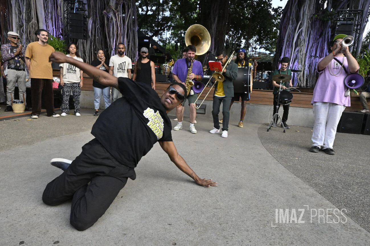 Ils ont remis ça. Les musiciens survitaminés du Dats It Brass Band ont investi le village du festival dans une ambiance de fanfare. Leur groove cuivré, nourri aux sonorités de la Nouvelle-Orléans, a fait danser les festivaliers. Toujours accompagnés des danseurs de l'association portoise Run Bboy Connexion. Entre improvisations et énergie communicative, la fanfare a déclenché des applaudissement, des pas de danse... et beaucoup de sourirs. Regardez.