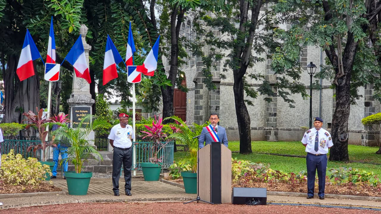 Anciens combattants, élus du conseil municipal et du conseil municipal des enfants du Port, officiels, lycéens des classes défense et le grand public se sont retrouvés ce samedi au Monument aux morts, place de l’église Sainte Jeanne d’Arc. "En ce 11 novembre 2023 qui marque le 105e anniversaire de l’Armistice signé en 1918 qui mit fin aux combats de la Première Guerre mondiale, la traditionnelle cérémonie du souvenir a été présidée par le maire, Olivier Hoarau" note la mairie du Port dont nous publions le communiqué ci-dessous (Photo : mairie du Port)