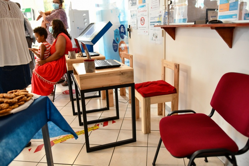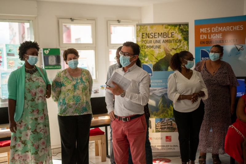 Mercredi 4 mai 2022, cinq familles portoises ont reçu chacune un bureau, un ordinateur et terrarium végétal en présence des adjoints au maire du Port, Mémouna Patel (Éducation), Ali Mihidoiri (Développement de l'économie sociale et solidaire) et Bibi Fatima Anli (Politique d'insertion professionnelle). Financé par la SIDR, l'équipement a été offert aux familles identifiées par le Programme de Réussite Éducative (PRE) dans le cadre du contrat de ville. Nous publions ci-dessous le communiqué de la ville du Port. (Photos - Ville du Port)