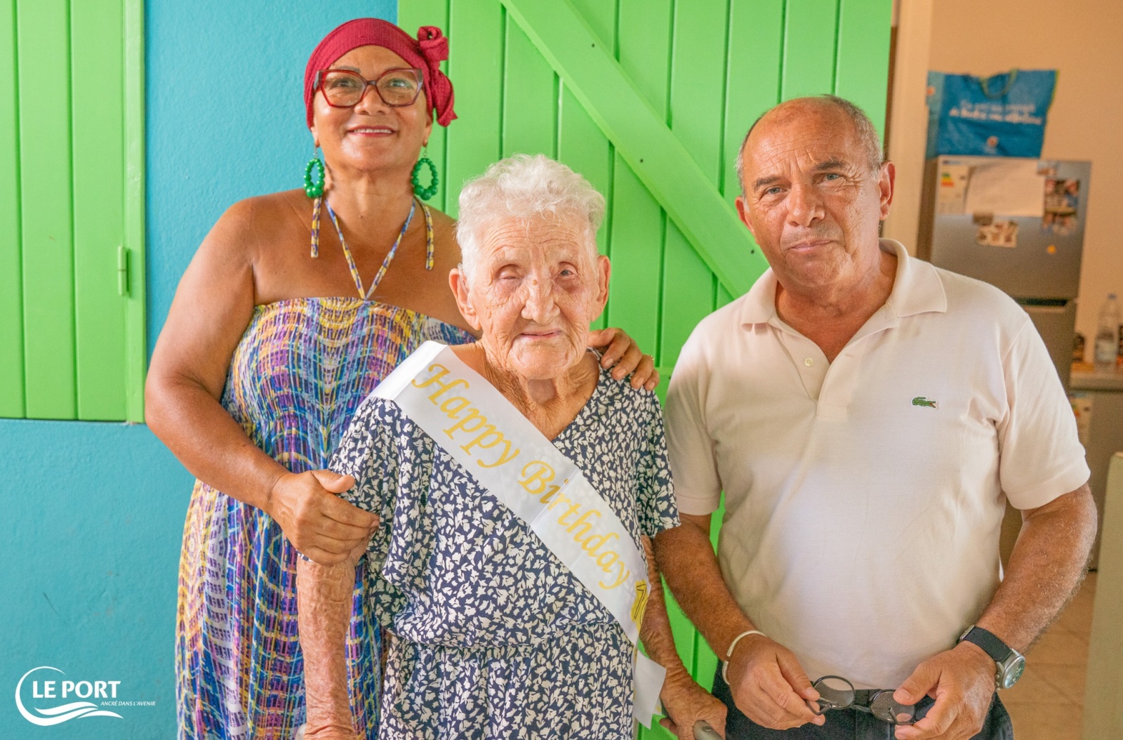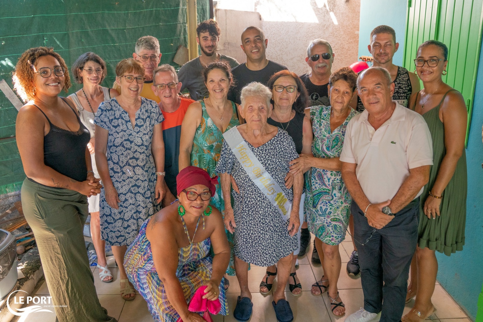 "Anne-Odile Gonthier a célébré au Port un siècle de souvenirs entourée de ses 6 enfants, 29 petits-enfants et 25 arrière-petits-enfants, dont certains ont fait le déplacement depuis l'Hexagone pour partager ce moment exceptionnel, en présence des élus Franck Jacques Antoine et Brigitte Laurestant" annonce la mairie du Port (Photo mairie du Port)