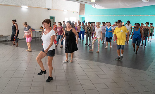Le rendez-vous est désormais hebdomadaire et il se déroule dans la salle polyvalente à côté de la Maison des séniors au Port. 40 personnes se retrouvent chaque mercredi pour un cours de danses en ligne. Les danses en ligne comprennent toutes les danses de groupes pratiquées individuellement, soit l'un derrière l'autre, soit côte à côte, soit encore en deux lignes se faisant face. On trouve des danses en lignes tant parmi les danses traditionnelles que parmi les danses de société ou les danses rock.