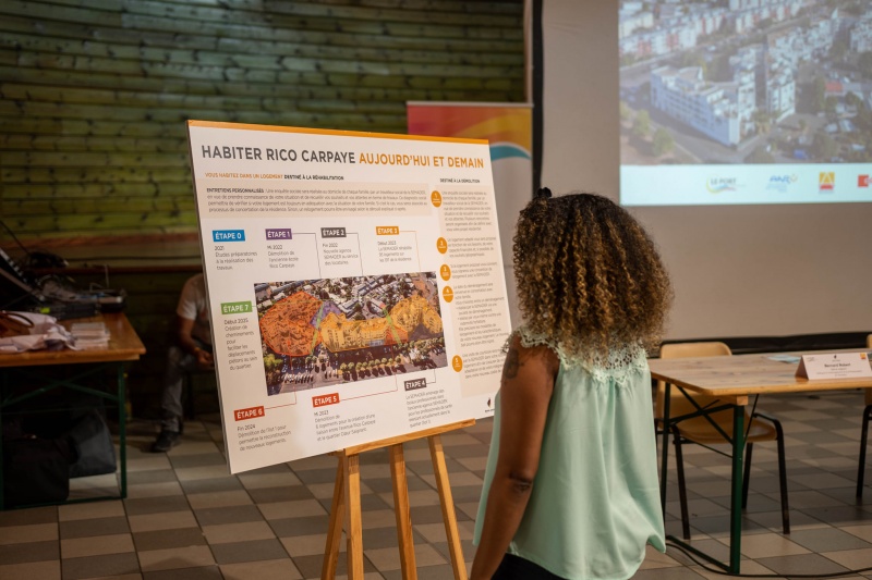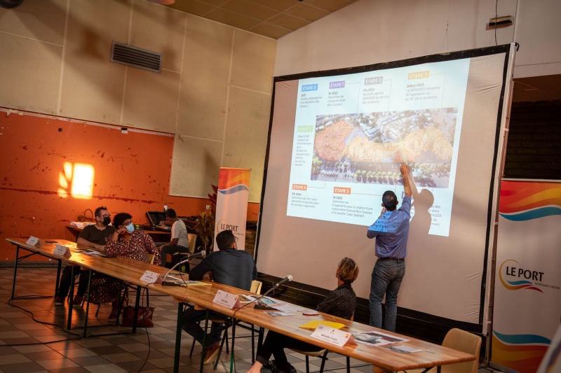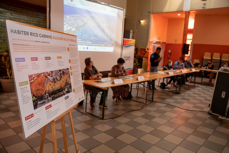 Le quartier Rico Carpaye fera peau neuve dans le cadre d'un grand projet de rénovation urbaine lancé par la Ville du Port, avec l'ANRU, intitulé " Nouvo Lorizon ". Les grandes lignes de ce projet ont été présentées aux locataires ce mercredi 13 octobre 2021 à la salle Paulette Adois Lacpatia, en présence du maire Olivier Hoarau, de Jasmine Béton, adjointe au maire déléguée à la politique du logement de Bernard Robert, 4Úme adjoint en charge de l'aménagement et la préservation du territoire et d'Anne Sery la directrice générale de la Semader. (Photos : ville du Port)