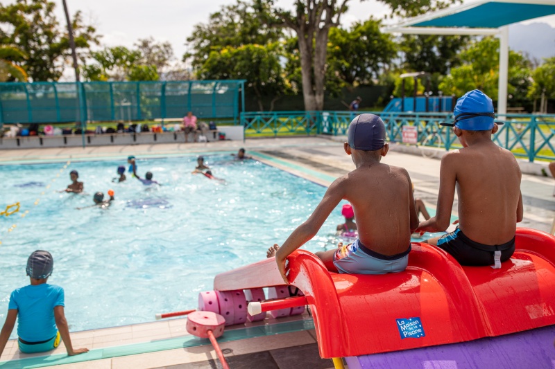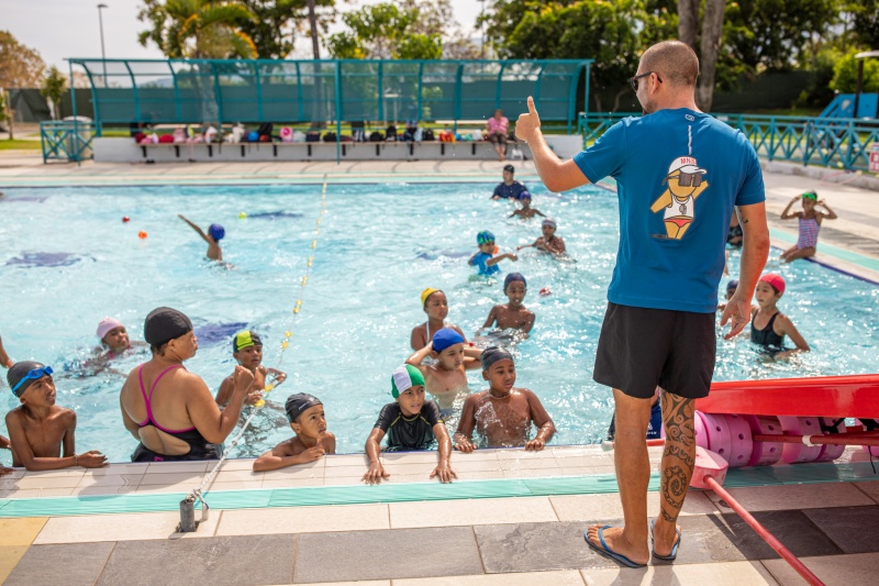 Jusqu'au 24 janvier 2022, Vakans dann Port propose une plusieurs d'activités en centre de loisir au petit portois. Cette semaine et à l'occasion des vacances, les enfants du centre de loisir Camille Macarty ont profité d'activités nautiques dans la piscine municipale de la ville du Port. (Photo ville du Port).