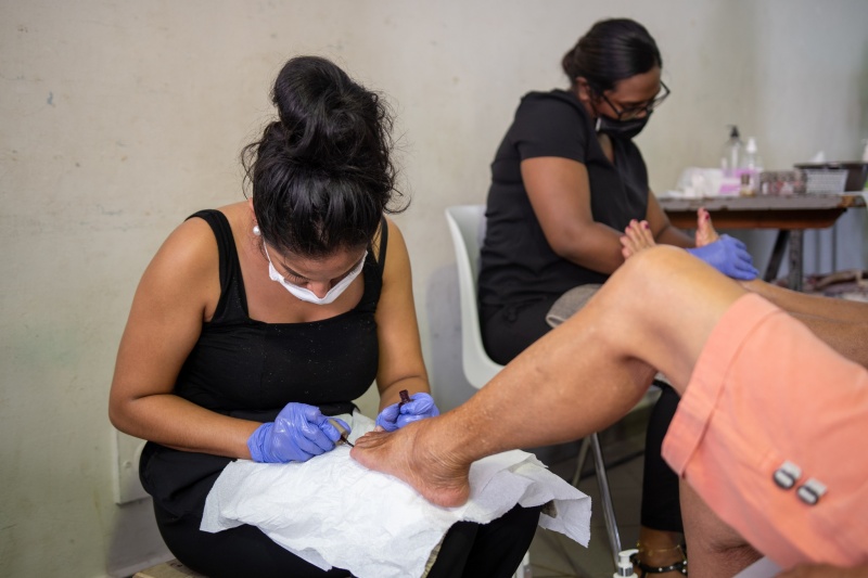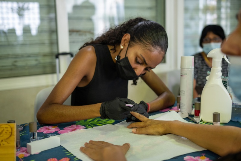 A l'initiative de la Maison des Seniors sous l'égide du CCAS du Port, les aînées de la ville se sont retrouvées à l'occasion de la Journée des droits des femmes. Les personnes âgées de différents quartiers étaient conviées ce jeudi 10 mars à la salle Multifonction de la Zup. Présence à cette occasion de Karine Mounien, adjointe au maire en charge de la Solidarité portoise. Au programme une demi-journée d'activités afin de créer davantage de lien social, lutter contre l'isolement et prendre soin de soi. Coiffure, soin du visage, pose de vernis, soin des pieds, atelier création de 'panier parfumé' plantes et fleurs séchées, une série d'ateliers était proposée aux dames. (Photo : ville du Port).