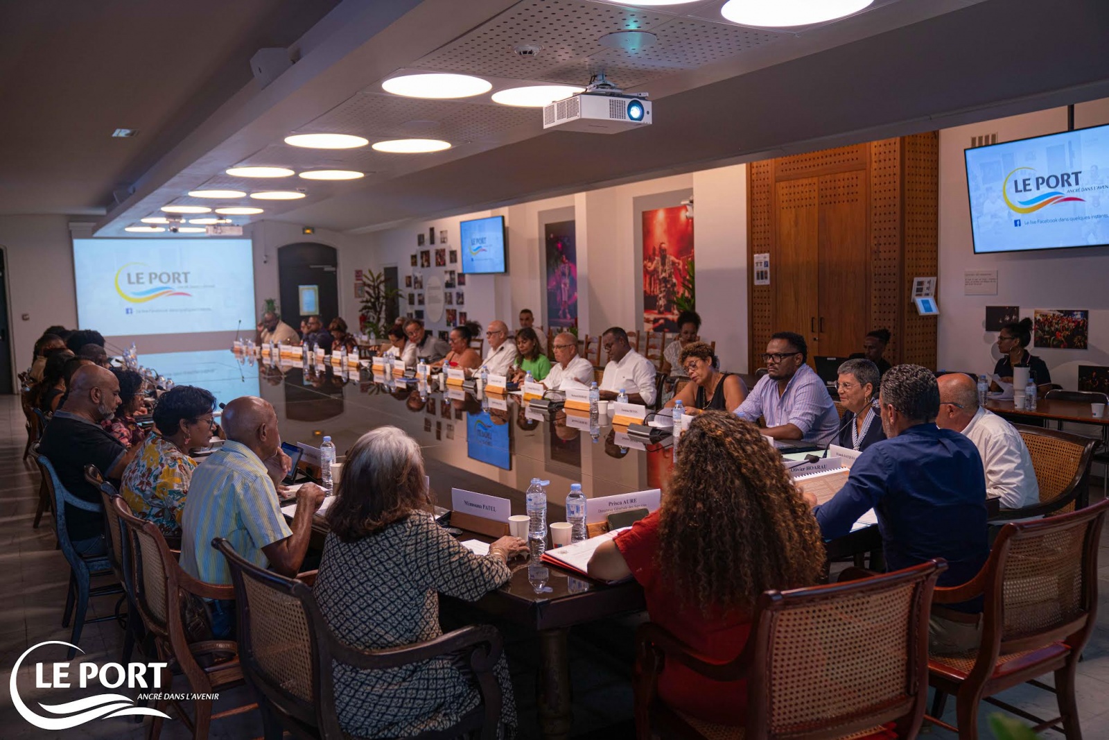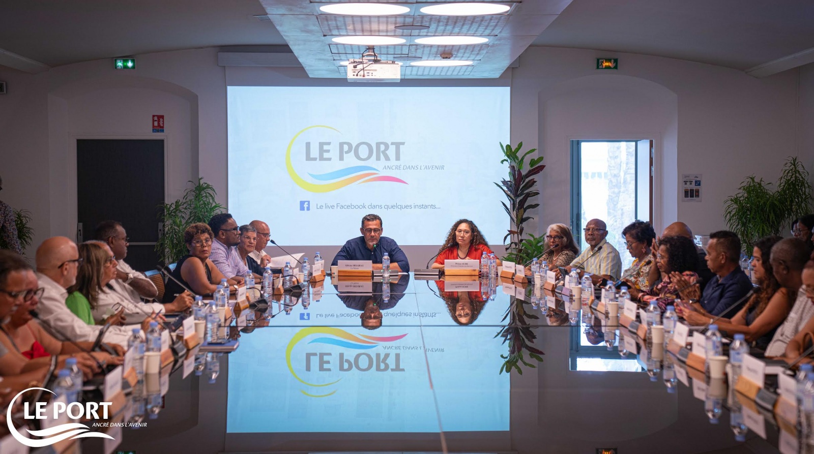 La première séance du Conseil municipal de la Ville du Port, post-investiture d’Olivier Hoarau, s’est tenue ce mardi 31 mars en présence des élus de la majorité. À l’ordre du jour : la désignation des représentants de la Ville dans différents organismes et instances et la présentation des orientations budgétaires. Nous publions ci-dessous le communiqué de la mairie (Photo : mairie du Port)