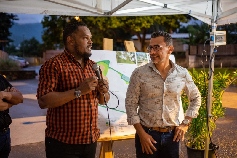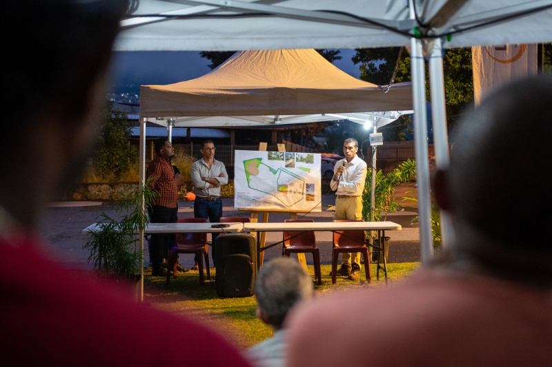 Jeudi 2 juin 2022, le maire du Port, Oliver Hoarau et Wilfrid Cerveaux, adjoint au maire délégué à la promotion de la vie associative ont rencontré les habitants du quartier Carambole à la Rivière des Galets. L'objectif de cette réunion publique : présenter le projet aire Carambole à la population. Nous publions ci-dessous le communiqué de la ville du Port. (Photos : ville du Port)