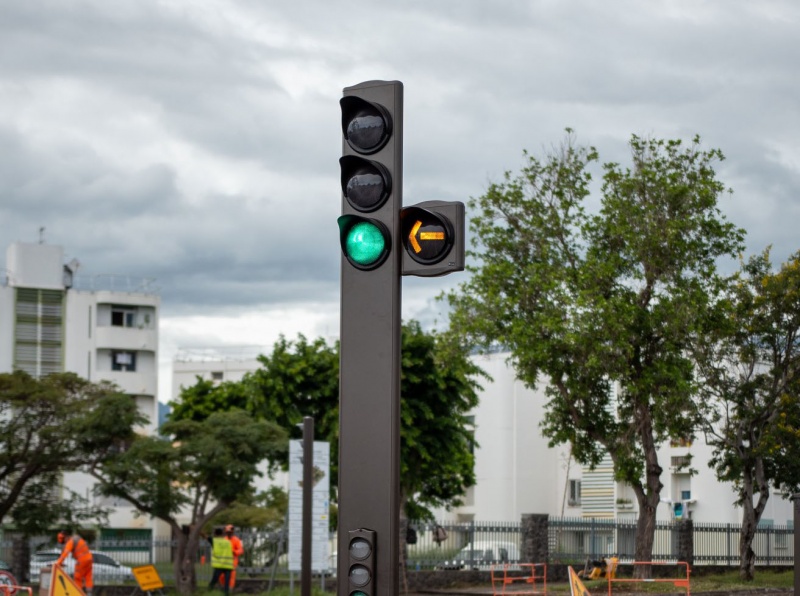 C'est une première. Des feux d'un nouveau genre ont fait leur apparition depuis quelques jours sur l'avenue Mondon. Ce sont des feux tricolores design et écologiques équipés de leds, mis en service dans le cadre des travaux de restructuration de l'avenue, informe la mairie du Port dont nous publions ici le communiqué. (Photo : mairie du Port)