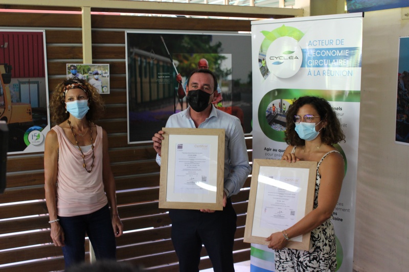 Ce mardi mars 2021, Cycléa s'est vu remettre une triple certification par l'organisme indépendant Afnor (association française de normalisation) . Cette triple certification vient conforter l'expertise de Cycléa, dans son engagement pour la Réunion dans le traitement et la valorisation des déchets. Nous publions ci-dessous le communiqué de presse de Cycléa. (Photo Cyclèa)