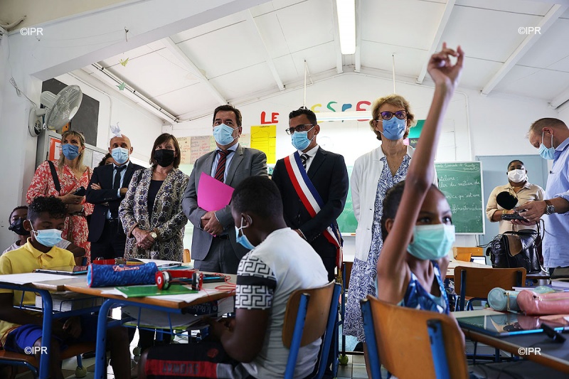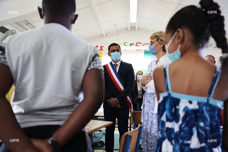 La rectrice Chantal Manès-Bonnisseau et le maire du Port, Olivier Hoarau, à la rencontre des élèves de l'école Raoul Fruteau