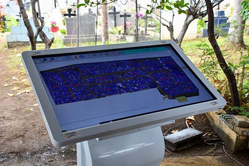 Outil de recherche de tombes efficace et simple d’utilisation pour les familles, le service funéraire et l’état civil, l’application "gestion des emplacements pour cimetière" a été entièrement développée à La Réunion. Elle permet d’enregistrer les dossiers concernant chaque défunt et propose une cartographie par quartier du cimetière. Un plan de masse a été refait à l’identique grâce à la prise de vue par drone.