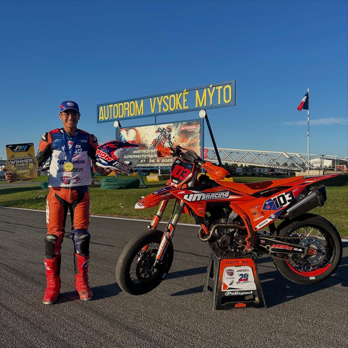 Le pilote réunionnais Raphaël Payet, originaire du Port, a décroché le titre mondial junior lors du Supermoto des Nations en République tchèque (27-28 septembre 2025). Sélectionné pour la première fois en équipe de France, il a contribué au quatrième sacre consécutif des tricolores grâce à ses 3ᵉ et 4ᵉ places, aux côtés de Gabin Pernat et Adrien Sarda. La France devance l’Allemagne et la République tchèque.Nous publions le post de la ville du Port ci-dessous. (Photos : ville du Port).