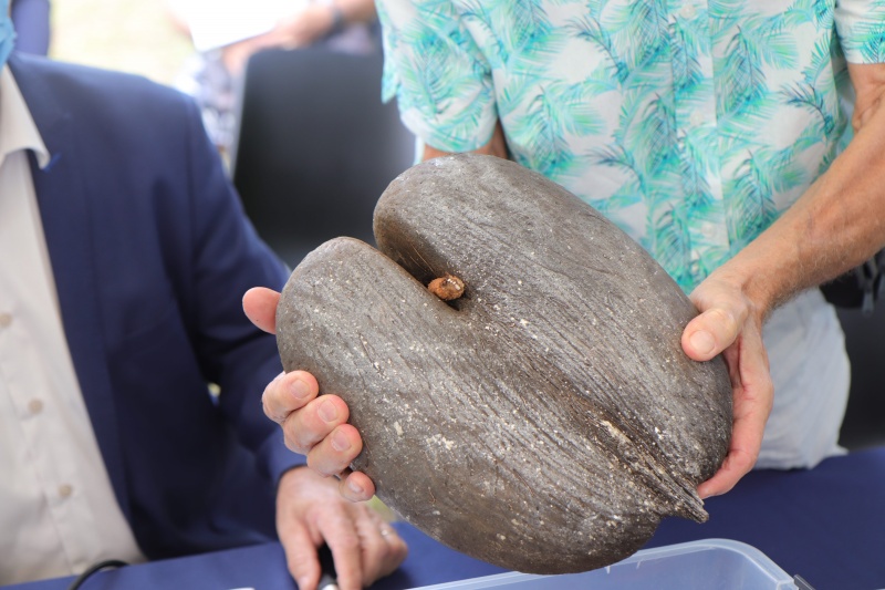 La plus grosse graine du monde, celle du "coco-fesse", a été plantée au Tampon ce mercredi 21 mai 2021, au parc des Palmiers. Cette graine de 6 kg provient du jardin botanique de Nong Nooch Tropical Garden, à Pattaya en Thaïlande. Nous publions ci-dessous le communiqué de la ville du Tampon. (Photos : ville du Tampon)