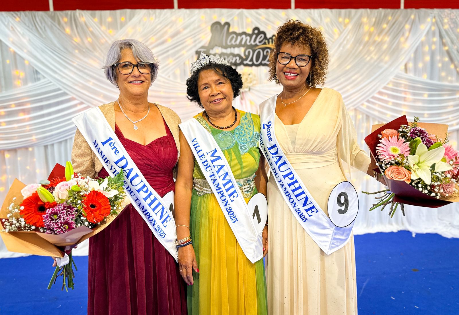 La salle du 12ᵉ km a accueilli dimanche l’élection de Miss Mamie ville du Tampon 2025. Marie Line Fraynal a remporté le titre, suivie de Marie Line Dijoux, première dauphine, et de Marie Jocelyne Fernante, deuxième dauphine. L’événement a mis à l’honneur l’élégance et la vitalité des mamies tamponnaises.Nous publions le post de la ville du Tampon ci-dessous. (Photo : ville du Tampon).