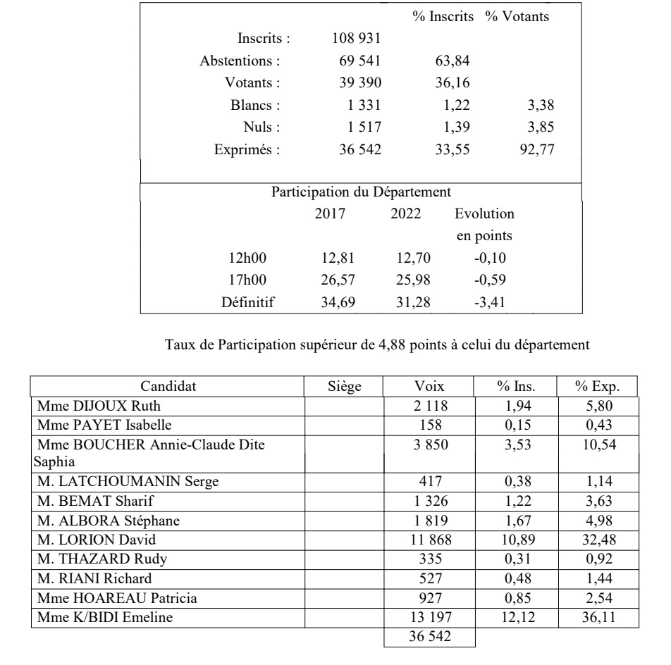 Les résultats de la circonscription :