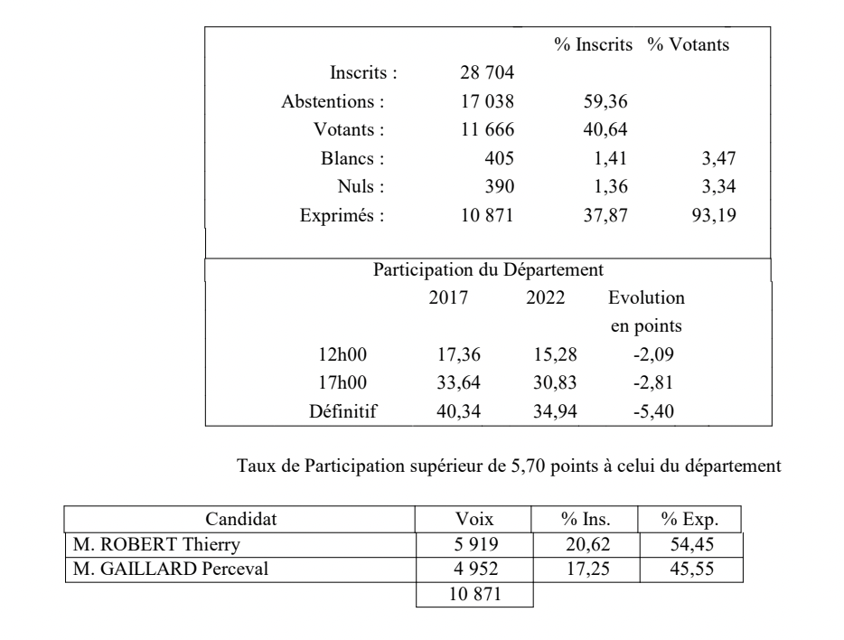 Félicitations à ce nouveau député. Maintenant, il faudra tenir toutes vos promesses électorales. Promesses d'embauches, pouvoir d'achat, baisse des impôts, augmentation du SMIC, des retraités, une vraie politique de formation pour notre jeunesse en perdition, une politique de lutte contre le chômage....etc, etc, vous êtes maintenant élu, très bientôt, il vous faudra que vous rendiez des comptes. Je vous rappelle, qu'aucun contrat d'apprentissage n'a été signé dans les communes dont vous êtes élu, le prix de l'eau est trop chère, 45% de la population vit sous le seuil de pauvreté, 37 % de chômage dont 60 % des jeunes, nos aînés sont abandonnés....le travail est immense, vous avez promis maintenant que vous êtes en responsabilité il vous faudra que des ACTES forts soient déclinés. Bonne chance à vous.