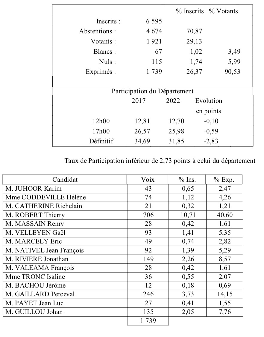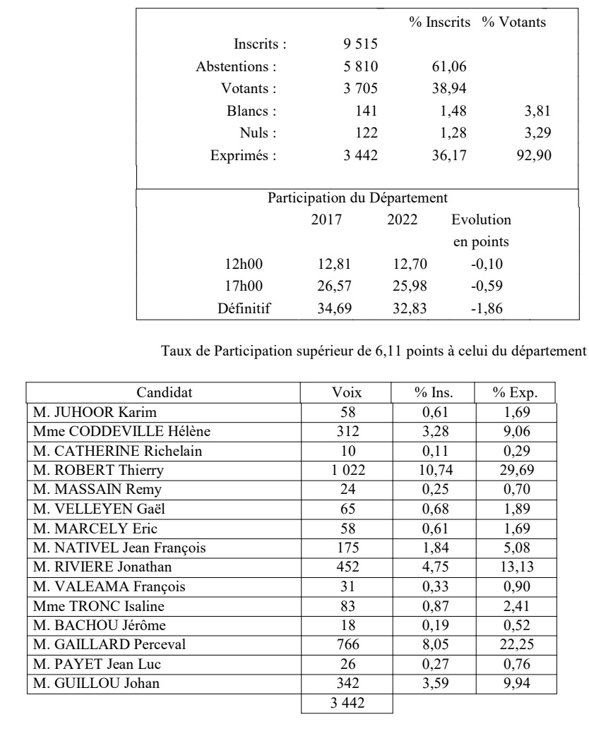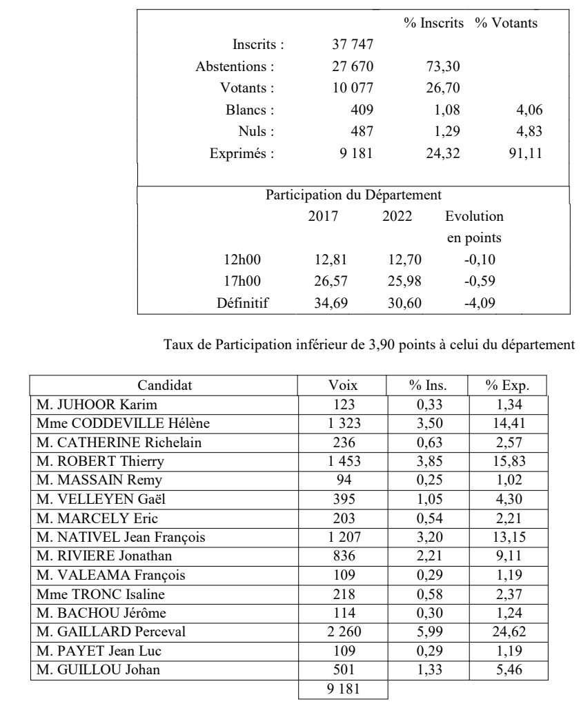 Les résultats de la 7ème circonscription donnent Thierry Robert (24,53%) et Perceval Gaillard (20,82%) en tête. John Guillou est donc exclu du second tour, il totalise 13,57% des voix. (Photo photo RB imazpress)