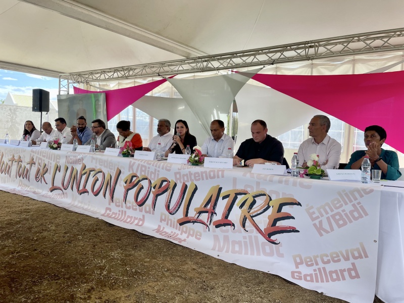 Six candidats sont rassemblés ce mercredi autour de Huguette Bello, présidente de Région et du PLR. Ils représentent l'union des gauches, incarnée au national par la Nupes (Nouvelle union populaire écologique et sociale) menée par Jean-Luc Mélenchon. Celui-ci vise la majorité à l'Assemblée nationale, permettant l'instauration d'une cohabitation au sein de laquelle il brigue le poste de Premier ministre.