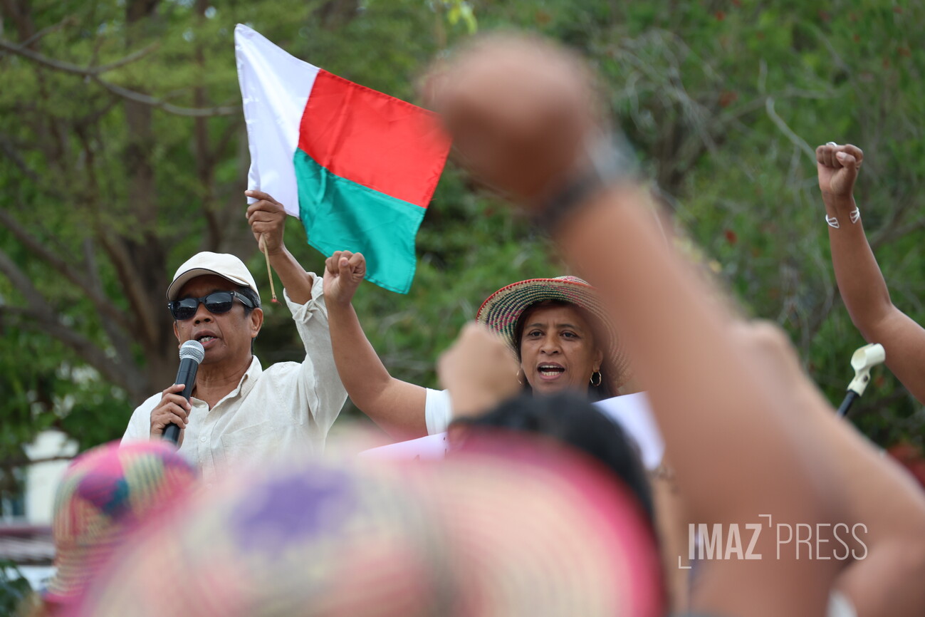 Ce samedi 11 octobre 2025, un contingent militaire a appelé les soldats et forces de sécurité à "unir leurs forces" et à "refuser les ordres de tirer" sur les manifestants. Un véritable signe d'espoir pour la diaspora malgache de La Réunion, de nouveau rassemblée sur le parvis de Champ-Fleuri (Saint-Denis) pour une mobilisation de soutien. Madagascar est le théâtre depuis deux semaines d'un mouvement de protestation né d'un ras-le-bol des coupures incessantes d'eau et d'électricité, qui s'est mué en une contestation plus large, notamment dirigée contre le président (Photos : dc/www.imazpress.com)