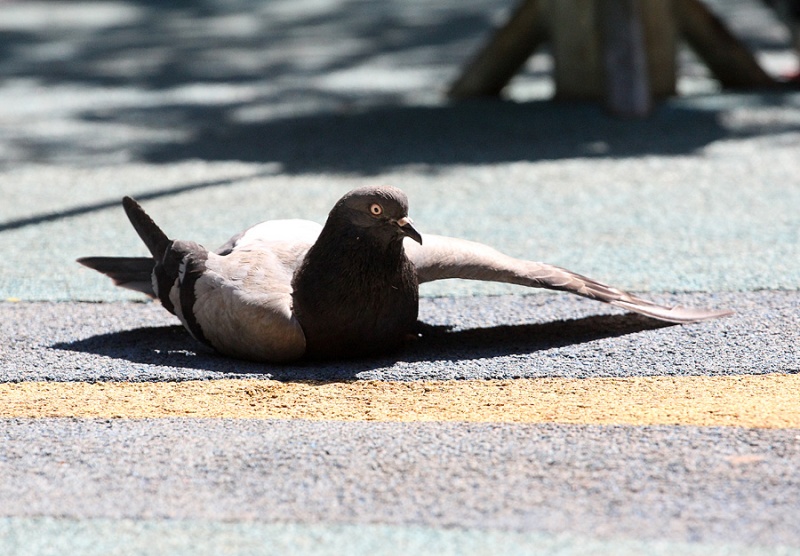 là pas de danger, sauf à recevoir une fiente de pigeon sur la tête mais ma foi, ce n'est pas mortel; quoique......ça dépend des circonstances.....