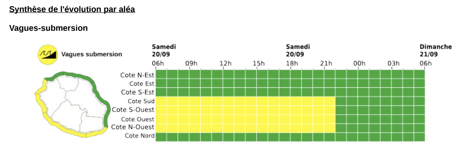 Pour dimanche, la mer demeurera forte dans l'ensemble avec un regain de vigueur de la houle de sud à sud-ouest autour des 2 mètres 50 à 3 mètres entre la Pointe des Galets et la Pointe de la Table.