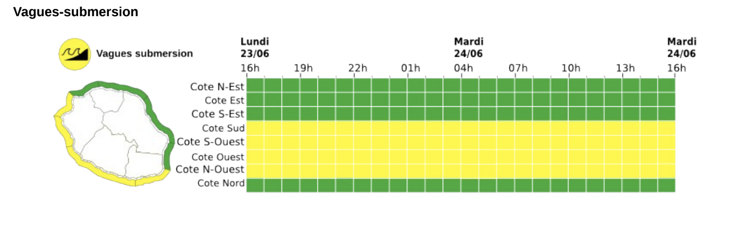 Météo France a émis une vigilance jaune vagues submersion de la Pointe des Galets à la Pointe de la Table en passant par la Pointe au Sel à partir de 4h ce lundi 23 juin 2025. La mer devrait rester "forte à très forte" dans l'ouest et le sud durant la journée de ce mardi, avant un amortissement dans la journée de mercredi (Photo sly/www.imazpress.com)