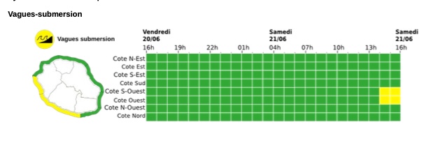 Météo France a émis un avis vigilance jaune vagues-submersion pour l'ouest et le sud-ouest de La Réunion à partir de 14h ce samedi 21 juin 2025. La vigilance court de la pointe des Aigrettes au Cap Chevron. (Photo photo rb/www.imazpress.com)