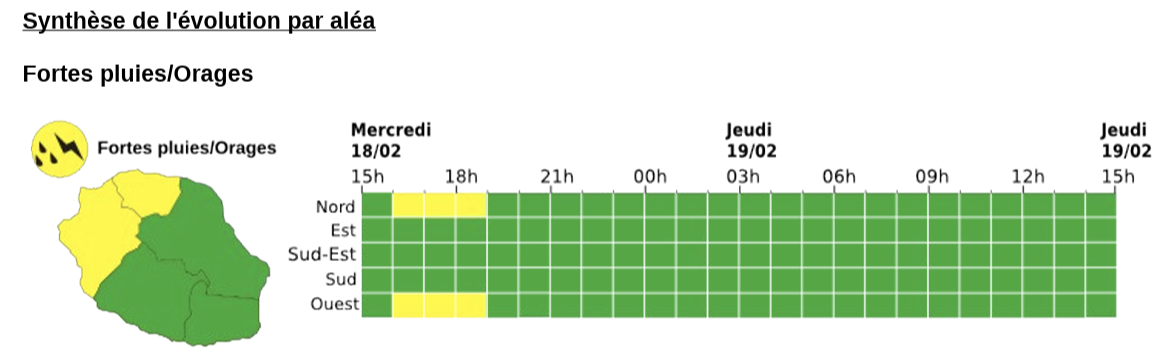 (Actualisé) Le nord et l'ouest de l'île seront en vigilance fortes pluies et orages ce mercredi 18 février 2026. Les nuages se développent facilement et prennent le dessus cet après-midi sur le relief et dans l'intérieur. "Ils deviennent alors menaçants pour finir par déverser localement de fortes averses", indique Météo France. Cet épisode est prévu jusqu'à 19 heures (Photo : rb/www.imazpress.com)
