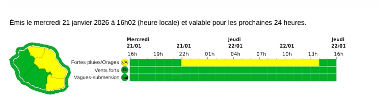 "Les cellules orageuses présentes en mer entre l'île Maurice et la Réunion peuvent rentrer sur terre avec des averses un peu plus significatives sur le Nord-Est du département. Ces cellules orageuses peuvent génerer de l'activité électrique et être accompagnées de coup de vent", détaille Météo France.