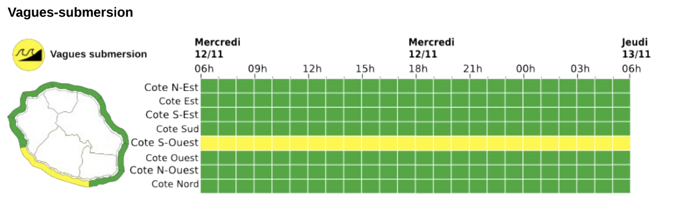 Météo France rappelle que la plus grande prudence est recommandée à proximité du littoral, en particulier sur les zones habituellement exposées aux fortes houles australes.