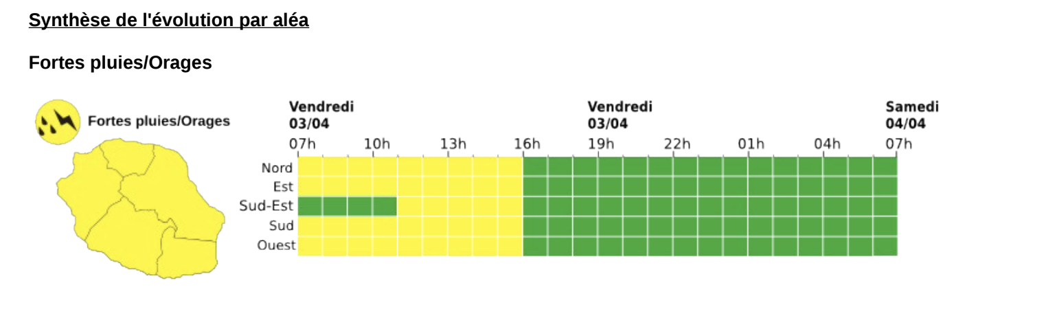 (Actualisé) Météo France a émis ce vendredi 3 avril 2026, un bulletin de vigilance jaune fortes pluies et orages pour toute La Réunion, excepté le sud-est. Cette zone sera en vigilance à compter de 11 heures. "C'est un ciel très nuageux à couvert qui prévaut aujourd'hui sur notre île au passage du premier front froid de l'année. Dans le prolongement de la nuit, des averses parfois orageuses, affectent une grande partie de l'île en matinée puis s'atténuent progressivement dès le début d'après-midi", indiquent les prévisions (Photo: Richard Bouhet / wwww.imazpress.com)
