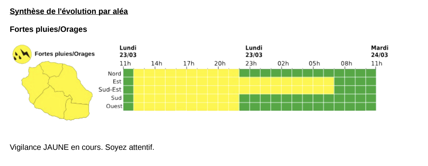 Dans un contexte toujours chaud, humide et instable, un coup de tonnerre localisé n'est pas à exclure du côté du volcan cet après-midi.